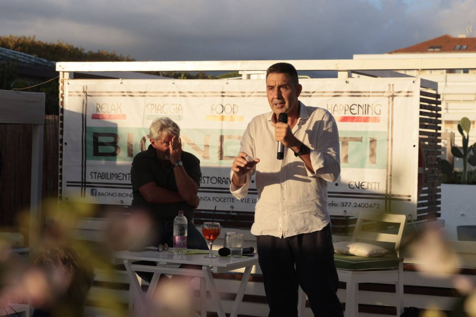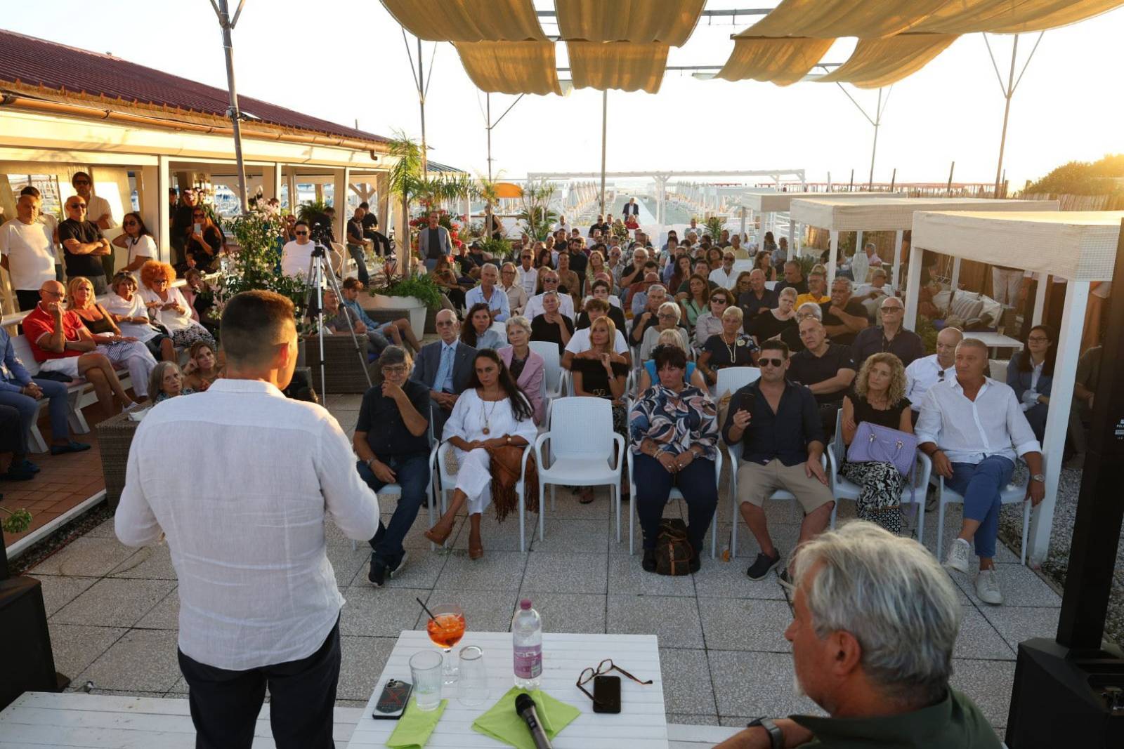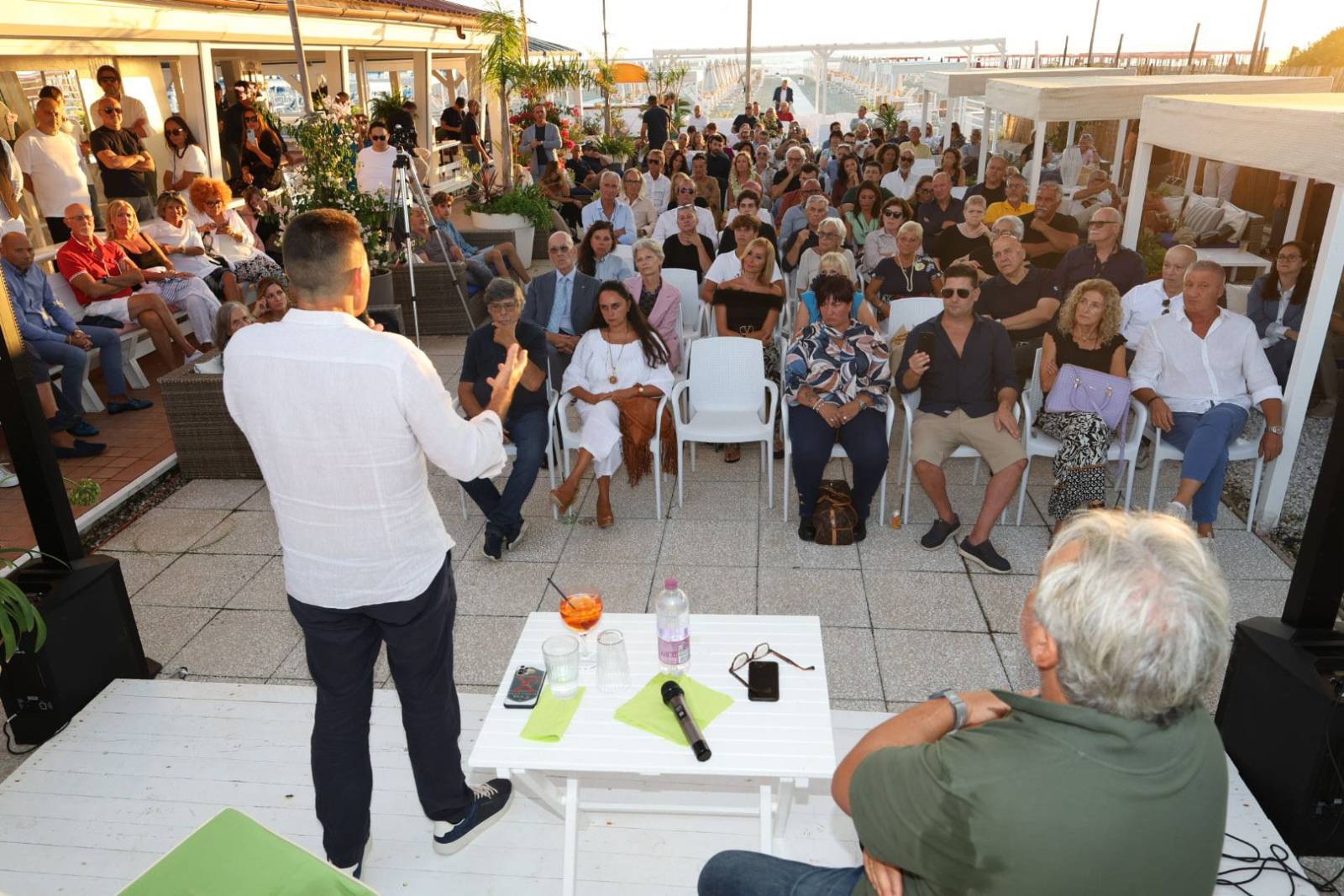 A chiudere la serata, il ritorno simbolico al luogo che segnò la sua prima apparizione pubblica: il Bagno Biondetti. Due anni fa, le sue idee suscitarono stupore e polemiche; oggi, da europarlamentare, Vannacci ha trovato conferma del suo seguito e della sua capacità di catalizzare attenzione. Dopo l’incontro, molti dei partecipanti hanno preso parte alla cena organizzata dal bagno, un momento conviviale con piatti di mare e discussioni animate sulle parole del generale. Tra calamarata alla luciana, filettini di branzino e tiramisù, il dialogo è continuato con il pubblico più vicino, in un’atmosfera di confronto e partecipazione che ha accompagnato l’intero evento.