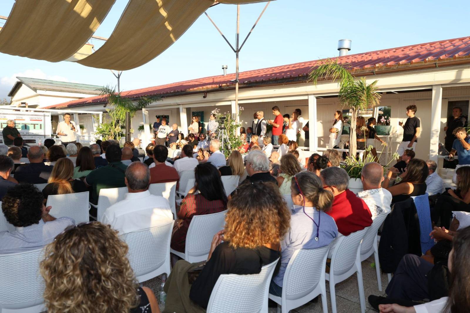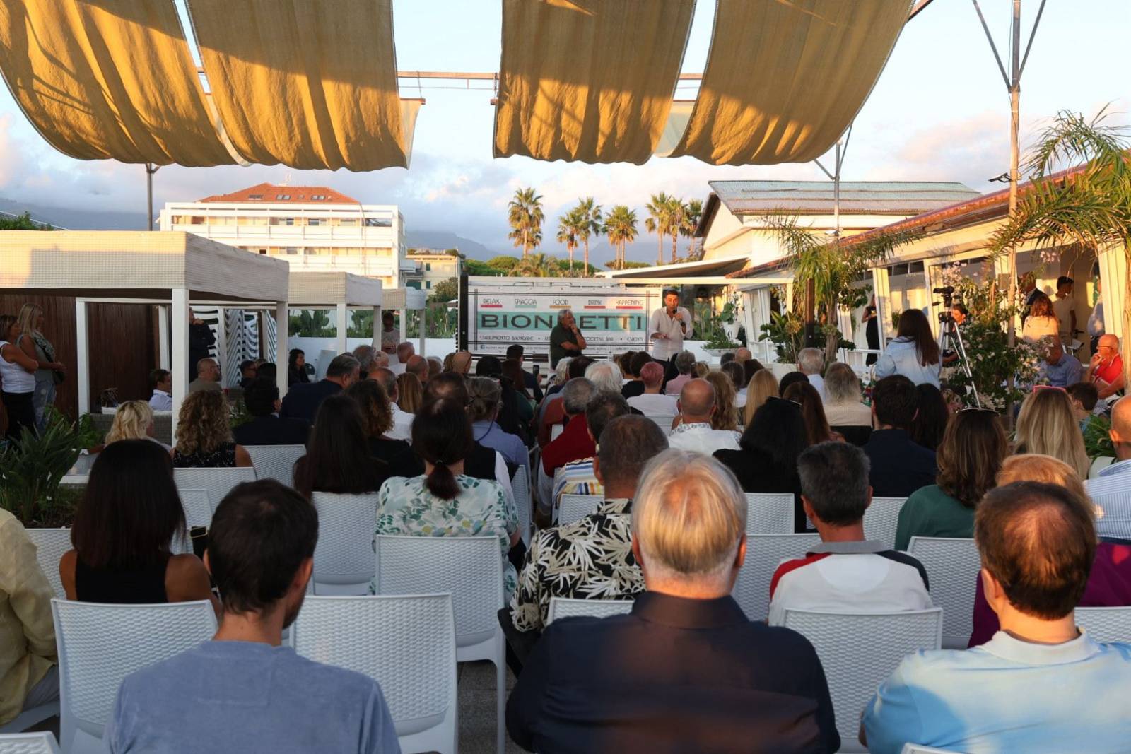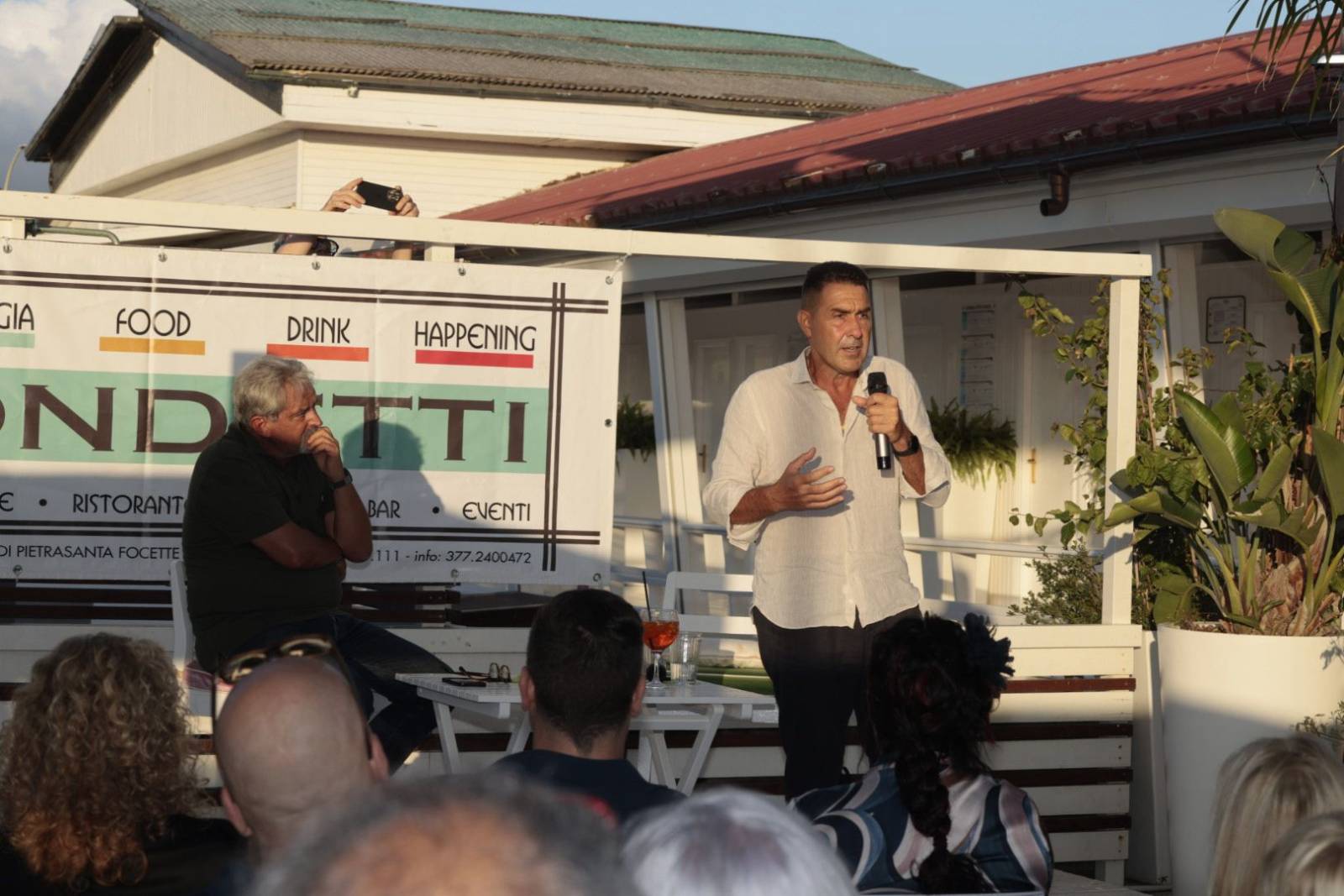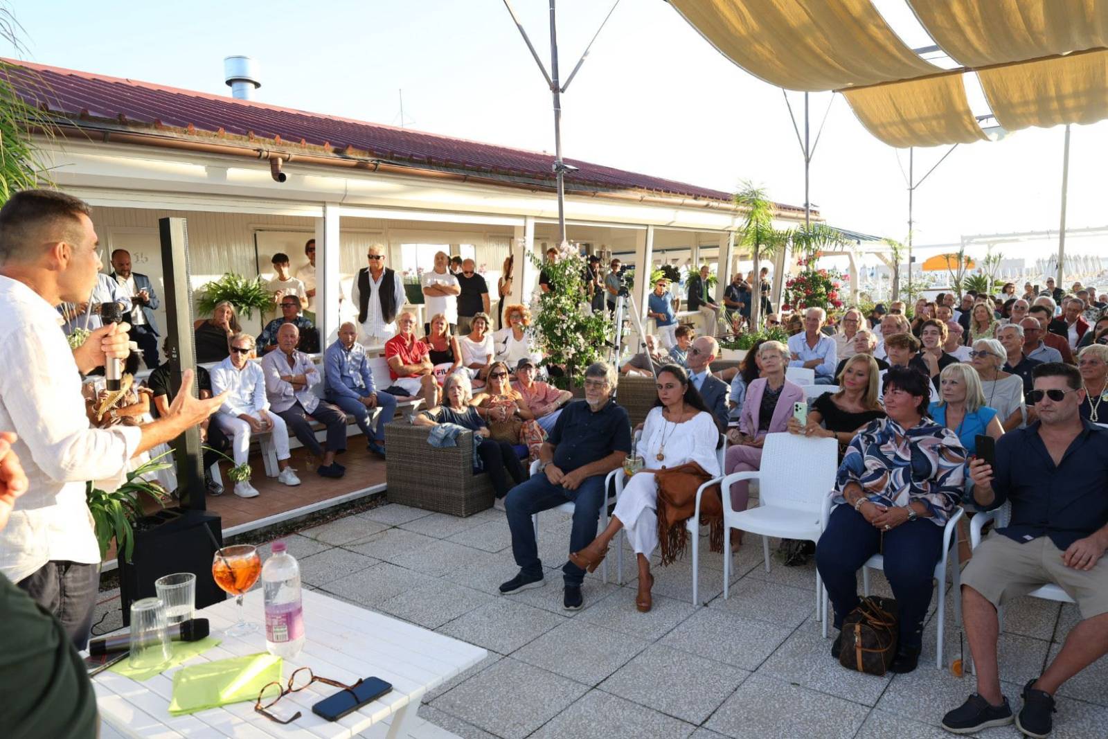 A chiudere la serata, il ritorno simbolico al luogo che segnò la sua prima apparizione pubblica: il Bagno Biondetti. Due anni fa, le sue idee suscitarono stupore e polemiche; oggi, da europarlamentare, Vannacci ha trovato conferma del suo seguito e della sua capacità di catalizzare attenzione. Dopo l’incontro, molti dei partecipanti hanno preso parte alla cena organizzata dal bagno, un momento conviviale con piatti di mare e discussioni animate sulle parole del generale. Tra calamarata alla luciana, filettini di branzino e tiramisù, il dialogo è continuato con il pubblico più vicino, in un’atmosfera di confronto e partecipazione che ha accompagnato l’intero evento.