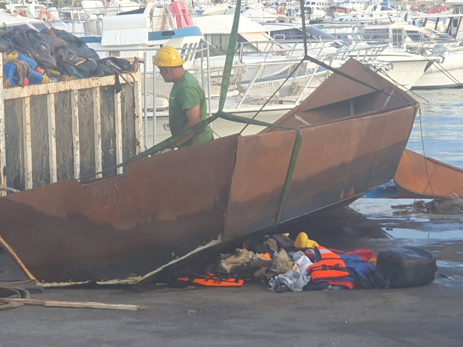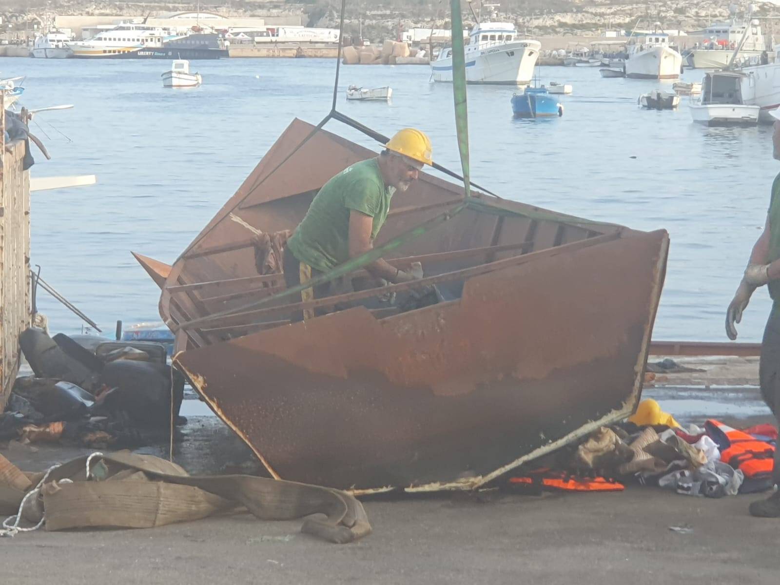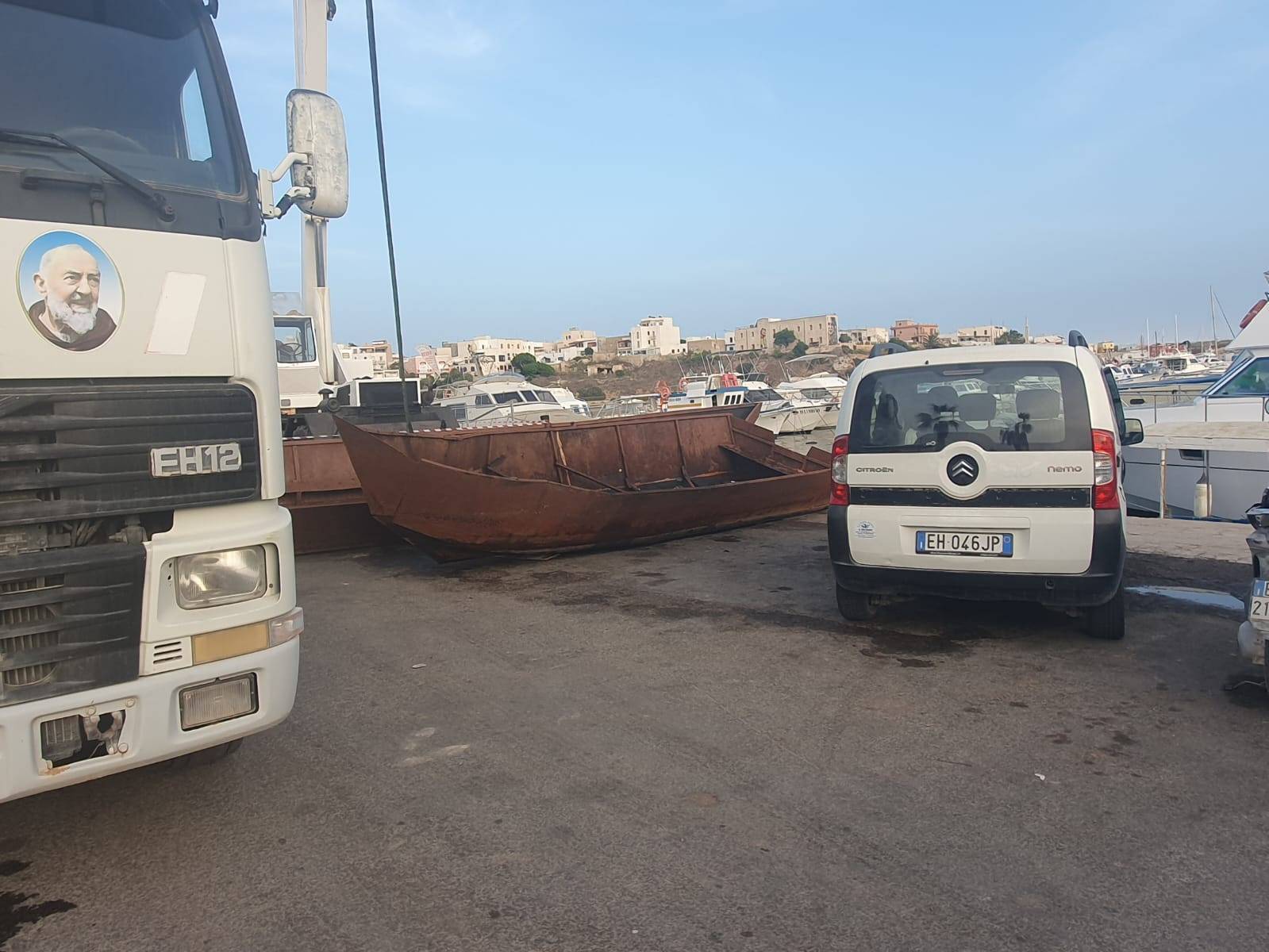 Altra considerazione andrebbe fatta sui mercanti di esseri umani. Sono organizzati, ma nessuno li può fermare sulle coste africane? Organizzati a tal punto che hanno, ci sembra di intravedere, anche dei cantieri navali. Finiti gli scafi, le cosiddette carrette del mare e i vecchi gommoni, stanno ultimamente realizzando altrettante “carrette del mare” metalliche, tutte uguali, tutte gemelle, magari riforniti da acciaierie presenti sul nostro continente. Non sarebbe il caso di individuare dove si realizzano queste barche, che di sicuro per la navigazione non hanno nulla? Semplici considerazioni che debbono far riflettere. Ma più di queste farà riflettere il reportage fotografico dei nostri inviati molto speciali, reportage che la dice lunga, più di ogni altra considerazione, sulla situazione nell’isola di Lampedusa. Ogni altra affermazione e considerazione è superflua. Abbiamo provato a vedere la situazione isolana sotto un altro punto di (s)vista nella speranza che chi governa in particolare l’Europa faccia lo stesso. A volte l’altro lato che spesso si tende ad occultare della “medaglia al valore politico” può nascondere la semplice soluzione al problema. Mai fermarsi alle prime apparenze.