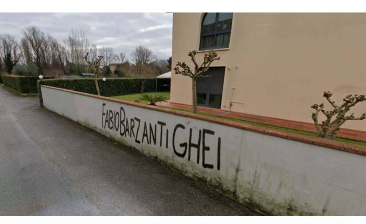 "È un fatto grave, imbarazzante e molto triste, anche perché si strumentalizza la lotta alle discriminazioni, che invece è un tema molto serio e purtroppo attuale - spiegano - E dispiace che l'assessore di Casapound Barsanti, chiamato direttamente in causa da questi mistificatori anonimi, non solo non ne prenda le distanze, ma sui suoi mezzi social addirittura ci ironizzi su. Ci pare infatti che la fake news sia stata orchestrata per gettare una colata di fango sul centrosinistra e quindi anche su tutti noi che lo rappresentiamo in consiglio comunale: basta leggere un passaggio dell'articolo pubblicato ("voglio solamente aggiungere il mio sdegno per la pochezza di alcuni figuri di certa sinistra, che, non riuscendo a sconfiggere l'avversario con i mezzi della dialettica democratica, si affidano al dileggio, se non alla diffamazione, nei confronti di un assessore che, peraltro, sta svolgendo egregiamente il proprio compito istituzionale") e i commenti apparsi sui social per rendersi conto di quello che stiamo dicendo. Ma ci sono voluti pochi minuti per fare una banale verifica e accorgersi che la foto in questione altro non è che frutto di un fotomontaggio: la scritta è stata messa artificialmente (con pc o cellulare) su una foto del muretto presa da Google Maps e risalente a febbraio 2022. Oggi, infatti, quella strada, gli alberi che si vedono dietro e il muretto stesso appaiono molto diversi (vedi foto allegata) e non esiste alcun segno di vernice fresca utilizzata per coprire la presunta scritta".