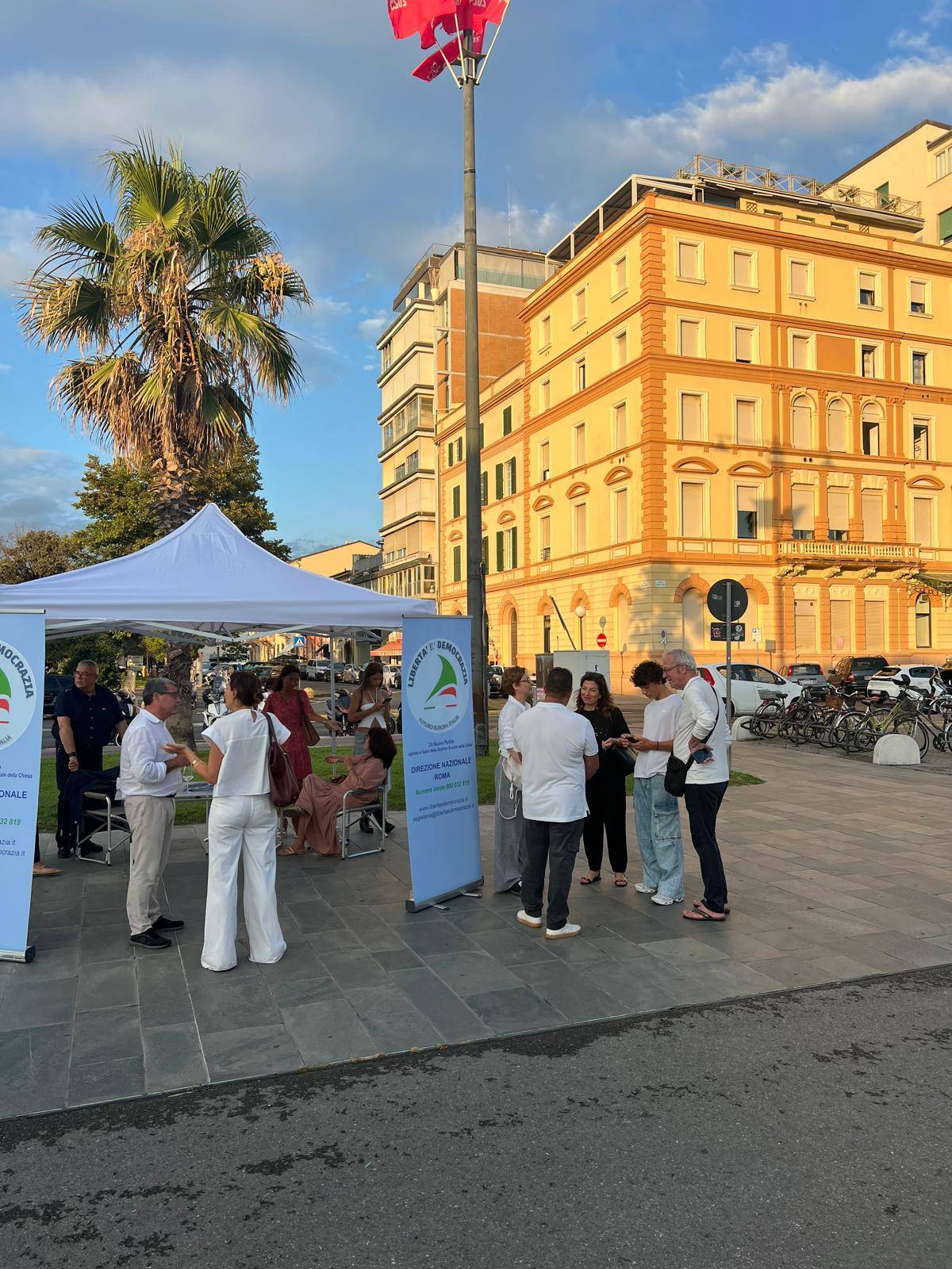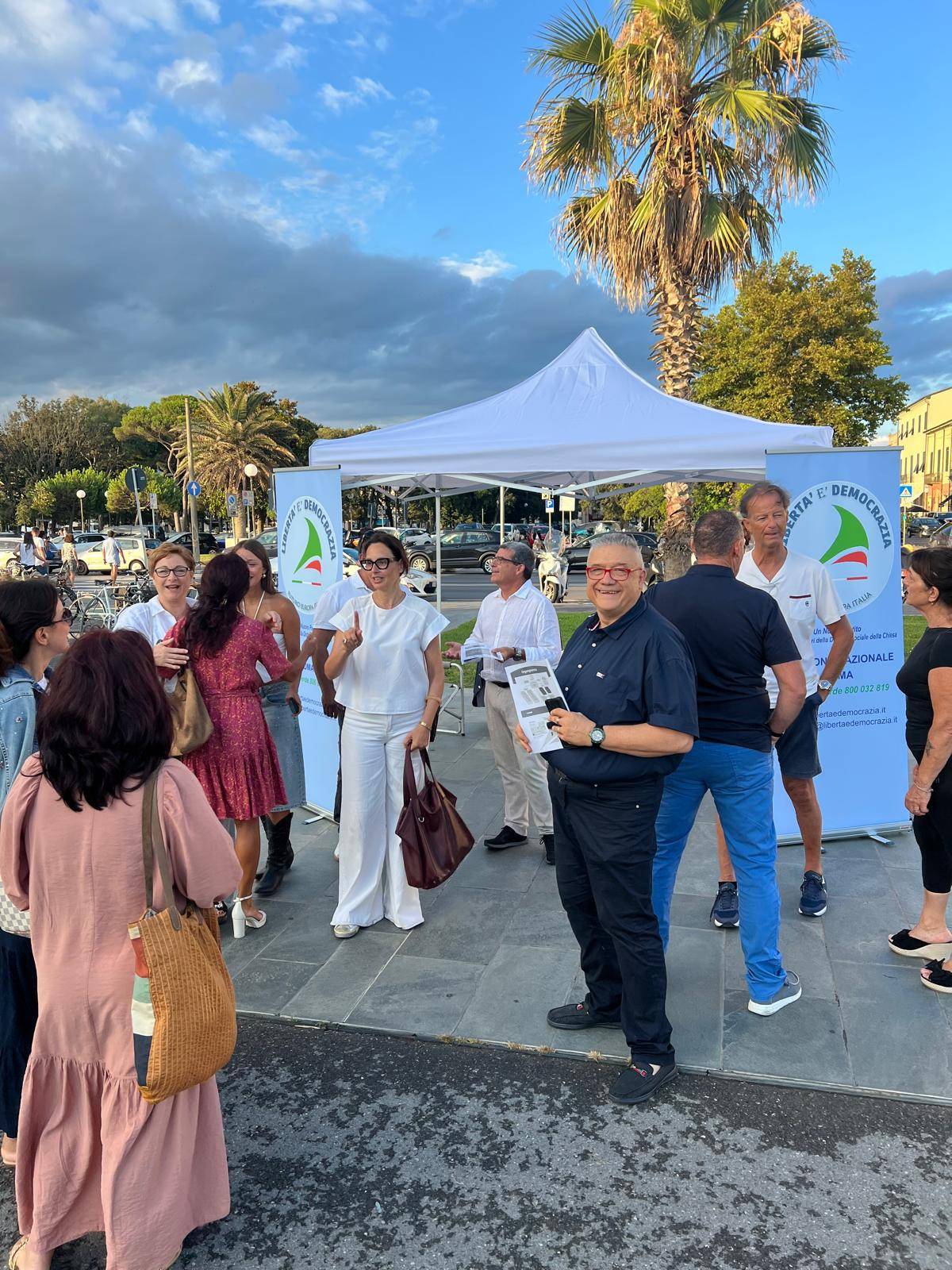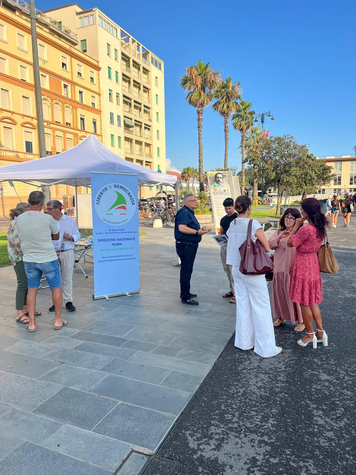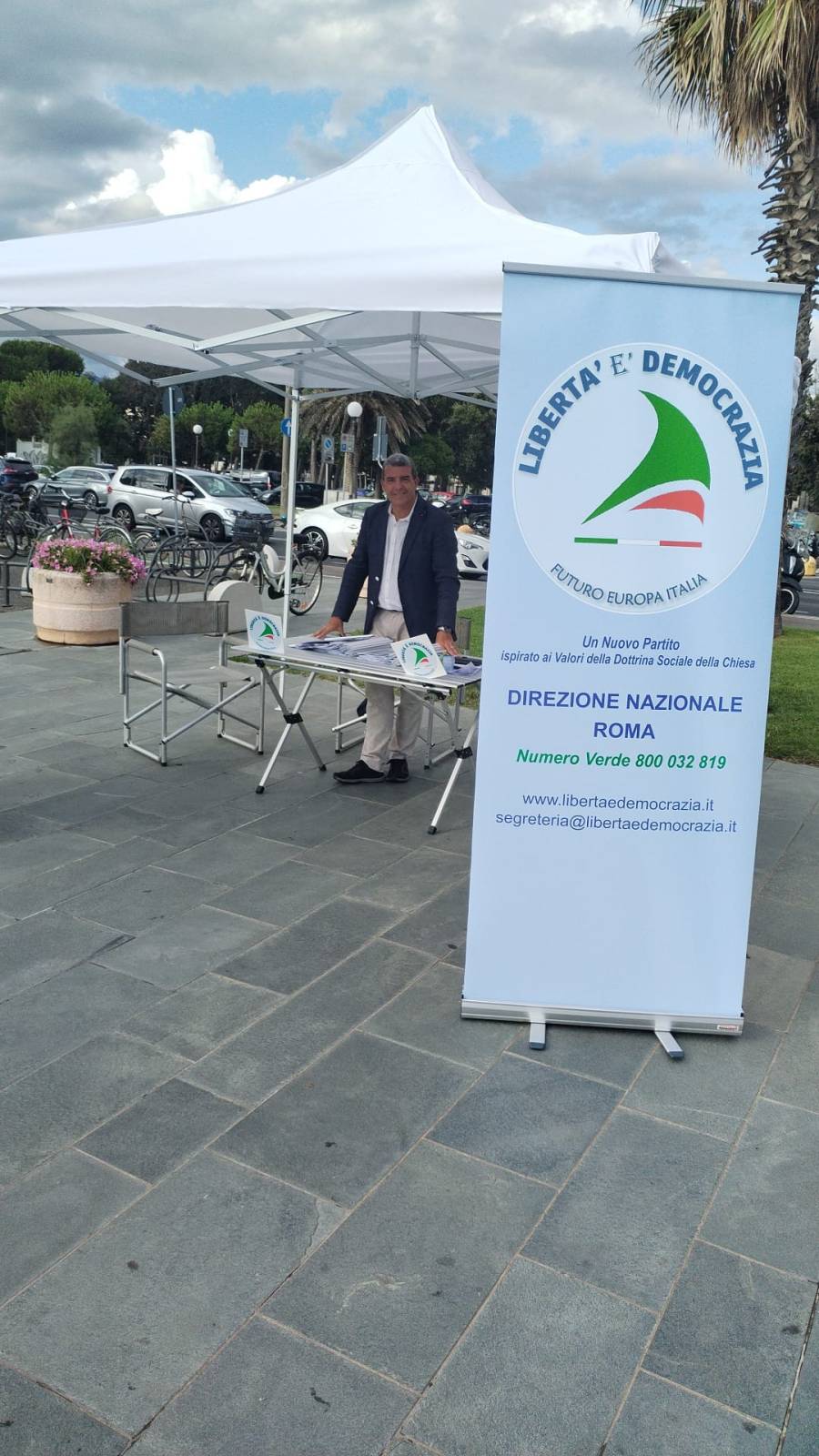 Primo gazebo nazionale per il nuovo partito Libertà è Democrazia, partito che si ispira alla dottrina sociale della chiesa, che ha deciso di presentarsi in terra di Toscana, a Viareggio, in una giornata di pioggia che però è volta al sole non appena montata la struttura per la presentazione. In molti si sono fermati, incuriositi ed interessati, a chiedere informazioni e chiarimenti, che i responsabili provinciali di Lucca e Pisa, Maurizio Zerini e Massimo Giorgetti, assieme al coordinatore regionale Luca Guadagnucci, non hanno lesinato a dare. Non potevano ovviamente mancare la coordinatrice regionale dell’area donne del partito, Federica Chiari, coadiuvata da Arianna Caruso, membro del direttivo nazionale, sempre dell’area donne ed il coordinatore comunale di Carrara Andrea Serpa. Presto i coordinatori inizieranno a presentare il partito anche alle TV locali, si inizia martedì con Rete Mia. L’umore è alto così come l’entusiasmo. Molto soddisfatto dell’esordio il presidente e Coordinatore Nazionale Giancarlo Affatato