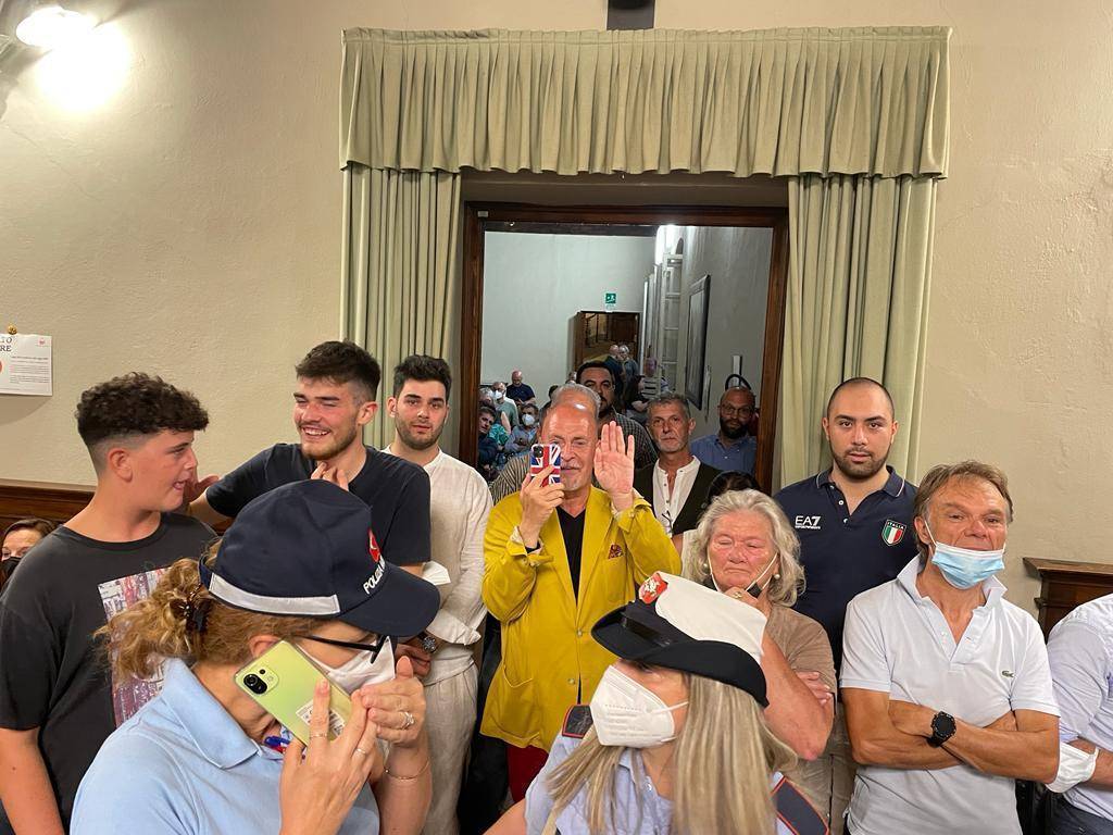 All'improvviso, all'ingresso della sala consiliare, è apparso l'influencer suo malgrado con una splendida giacca gialla che a chiunque starebbe male fuorché a lui, all'anagrafe Andrea Colombini, uno che ci ha messo la faccia in questa campagna elettorale dicendo apertamente e senza apparentamento alcuno, di votare per il nuovo sindaco. E che cosa ha ricevuto in cambio? Pesci in faccia a partire da ieri sera, quando è stato redarguito e invitato a interrompere non si sa bene che cosa, da quello che a noi è sembrato un dipendente comunale (il segretario?) che aveva una gran voglia di rompere le scatole in un modo o nell'altro.