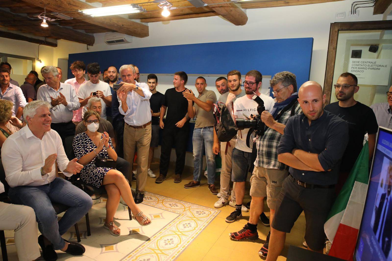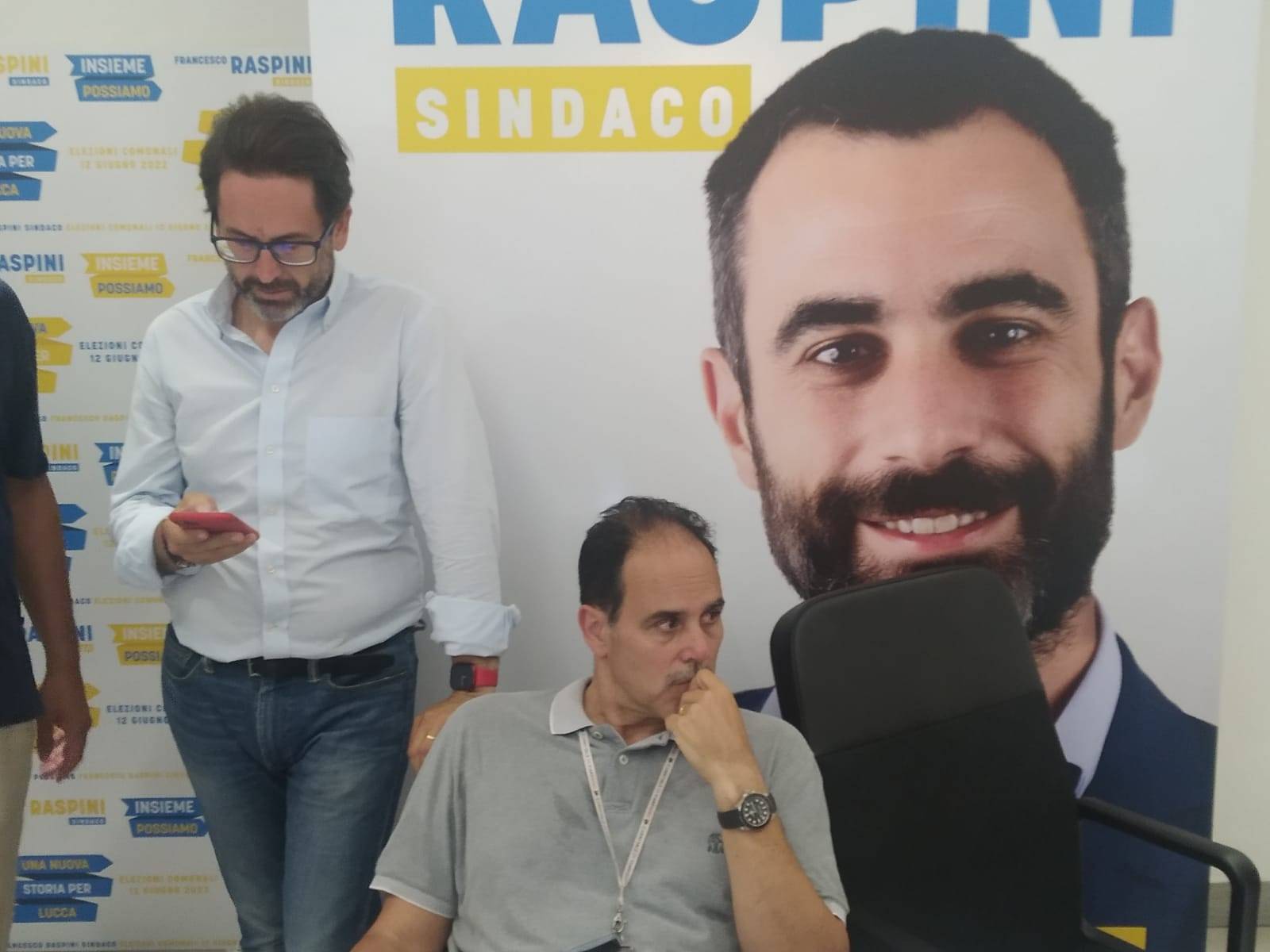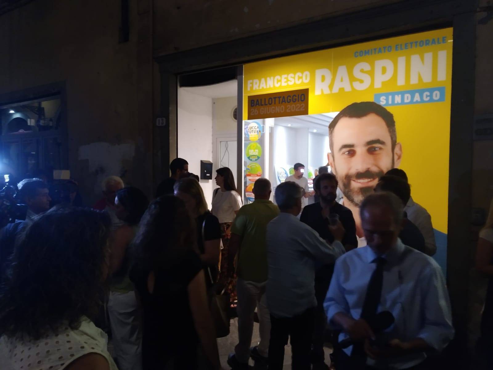 Ore 23.43: nella sede di Francesco Raspini in città ci sono, in attesa, il consigliere regionale Stefano Baccelli, il presidente della provincia Luca Meneseini e il senatore Andrea Marcucci.