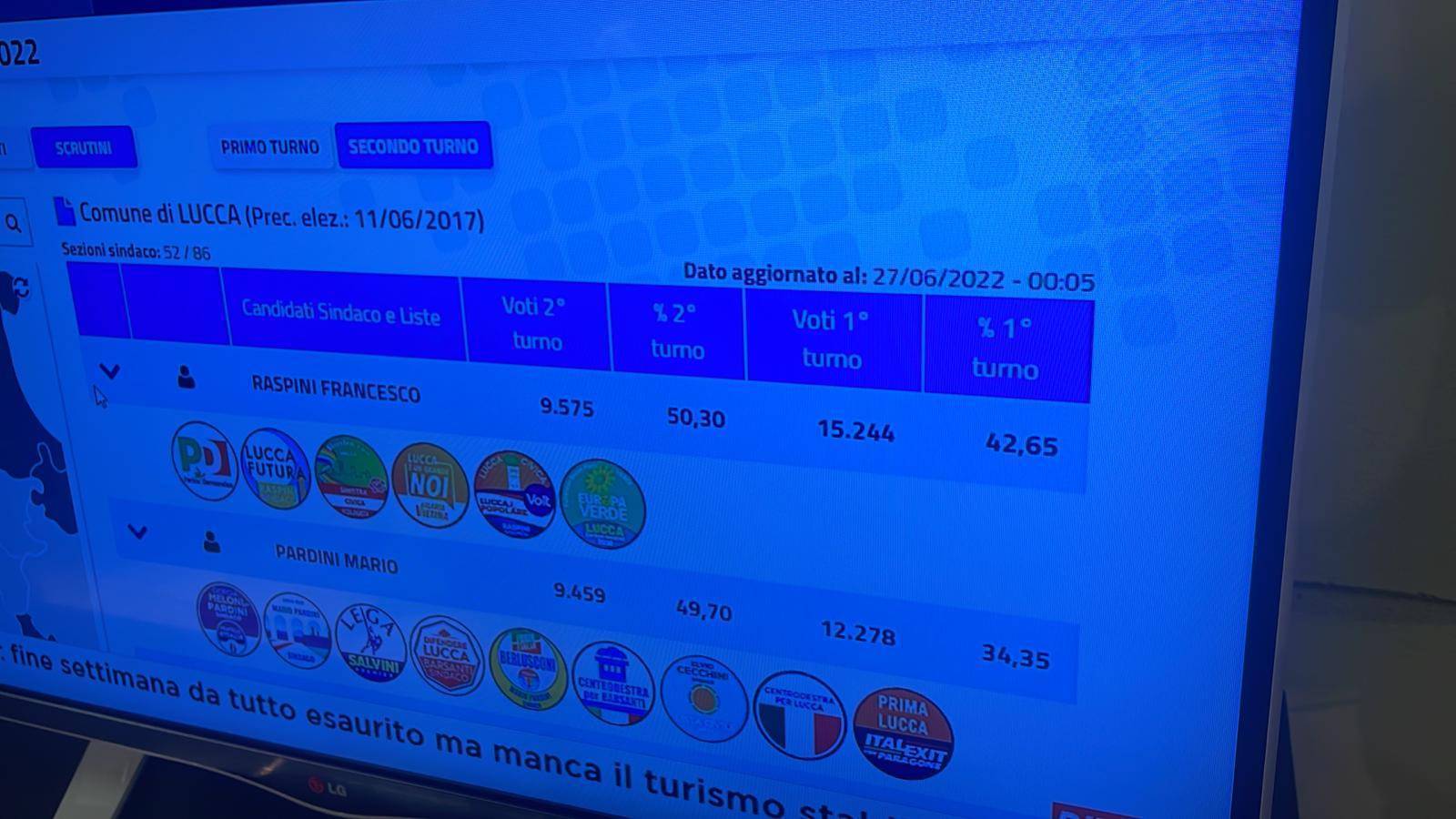 Ore 23.40: Francesco Raspini in leggero vantaggio, qualcosda come due punti o poco più. Se così finisse ancora una volta i lucchesi hanno dimostrato che delle elezioni e del cambiamento non gliene frega assolutamente nulla.