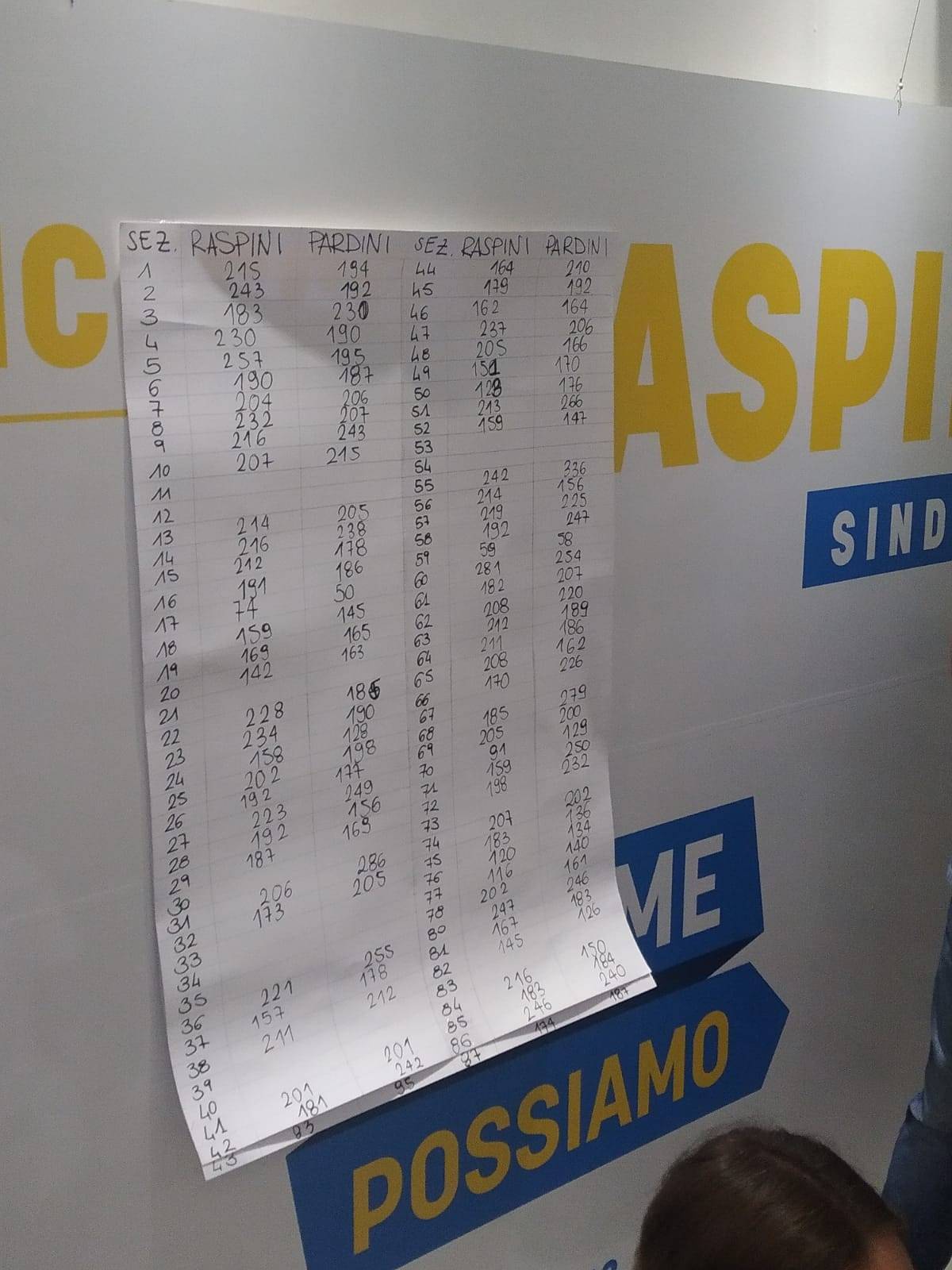 Ore 23.45: scrutinate 30 sezioni su 86: Raspini al 50.76% e Pardini 49.24%. In pratica Raspini per ora è in vantaggio di 164 voti.