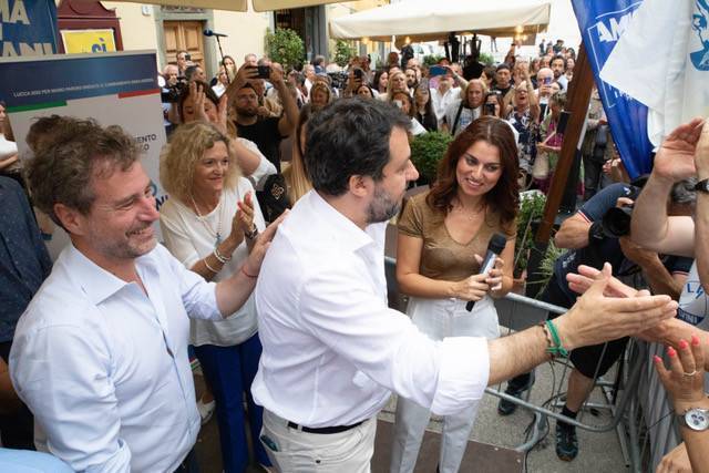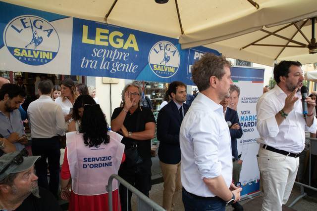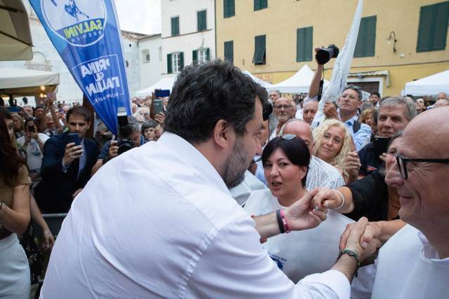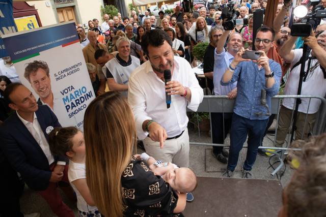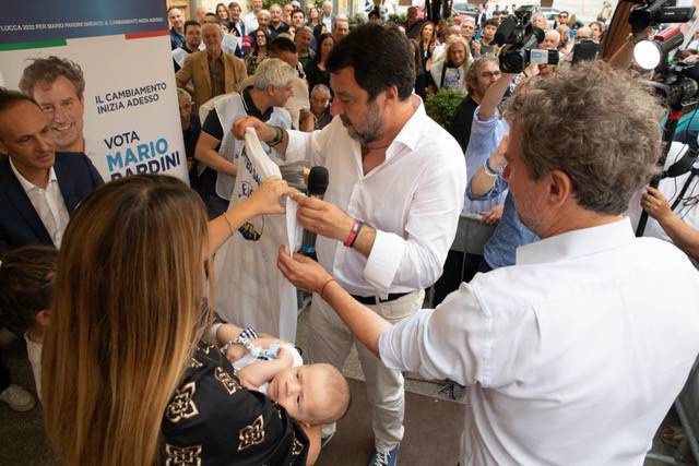 L'immagine più bella di tutta la serata è stata quella in cui il segretario nazionale della Lega Matteo Salvini si è fatto immortalare con il consigliere regionale Elisa Montemagni che teneva in braccio il figlio nato pochi mesi fa. Aggiungiamoci, poi, anche la foto che ha visto Salvini immortalato insieme all'ex presidente del Senato Marcello Pera - reduce da un intervento ad un occhio - con la sua nipotina. Infine, la valanga di selfie scattata con consiglieri comunali aspiranti e militanti oltreché simpatizzanti del Carroccio. Nel tardo pomeriggio in piazza San Frediano per la presentazione di Mario Pardini anche ad opera della Lega, dopo il comizio di Giorgia Meloni in piazza del Giglio, c'erano davvero tutti i vertici regionali e non solo segno che vincere a Lucca, per il centrodestra, sarebbe un colpo eccezionale: da Mario Lolini, Riccardo Cavirani e Salvadore Bartolomei, rispettivamente commissario regionale, provinciale e comunale del Carroccio, ad Elisa Montemagni capogruppo in regione Toscana, da Ilaria Benigni, consigliere provinciale al sottosegretario al Lavoro Tiziana Nisini.
