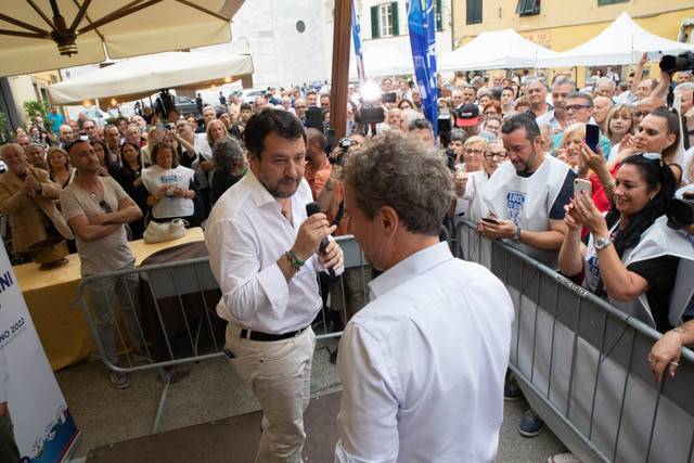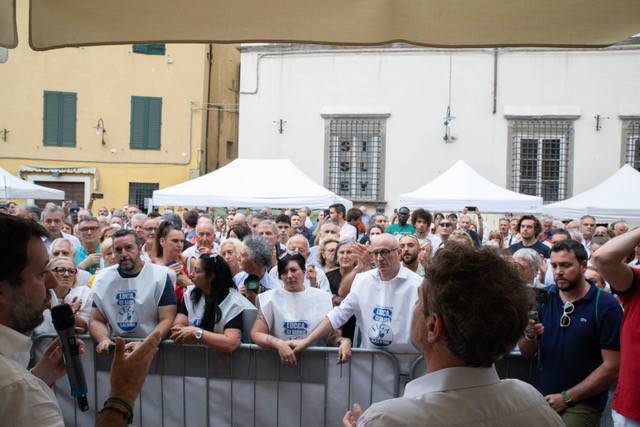 Matteo Salvini era appena stato a Carrara, città da lui elogiata convinto che dopo 70 anni sarà possibile toglierla alla sinistra. "Dieci anni", invece, per Lucca ha aggiunto in mano agli attuali amministratori che hanno anche il coraggio di dire di voler cambiare dopo che l'hanno governata nel peggior modo possibile. Tuttavia, ha specificato Salvini, non sarebbe giusto dire che Lucca fa schifo o che non è una bella città o che è degradata. Anzi, è una delle più belle città del Paese, ma la Lega con Pardini vuole renderla ancora migliore.