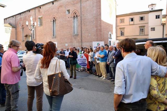Andrea Colombini si è presentato alla sua città in qualità di candidato a sindaco sorretto da due liste, la prima No Green Pass e Ancora Italia per la sovranità democratica. Lo ha fatto di fronte al suo locale e di Filippo Giambastiani, Rocco's, in piazza de' Servi nel cuore del centro storico. Un appuntamento che ha visto la partecipazione non solo di numerosi candidati delle due liste, ma anche di giornalisti, fotoreporter, fotografi, semplici curiosi. Colombini non ha usato perifrasi e non si è nascosto dietro la prudenza, anzi. Ne ha avute per tutti, a cominciare dal candidato a sindaco Francesco Raspini che ha criticato per non essersi ancora dimesso da assessore e di fare, nel contempo, campagna elettorale per divenire sindaco. Ce ne sono state anche per un innominato consigliere comunale al quale l'influencer suo malgrado ha rimproverato di aver lanciato un appello alle istituzioni sui social affinché togliessero a Colombini e al suo Festival dedicato a Puccini ogni tipo di contributo così da lasciarlo in mutande o quasi. "Un imbecille", ha aggiunto Colombini che ha detto di non voler rivelare il nome e cognome del genio della stirpe, ma che lo farà il 4 giugno.