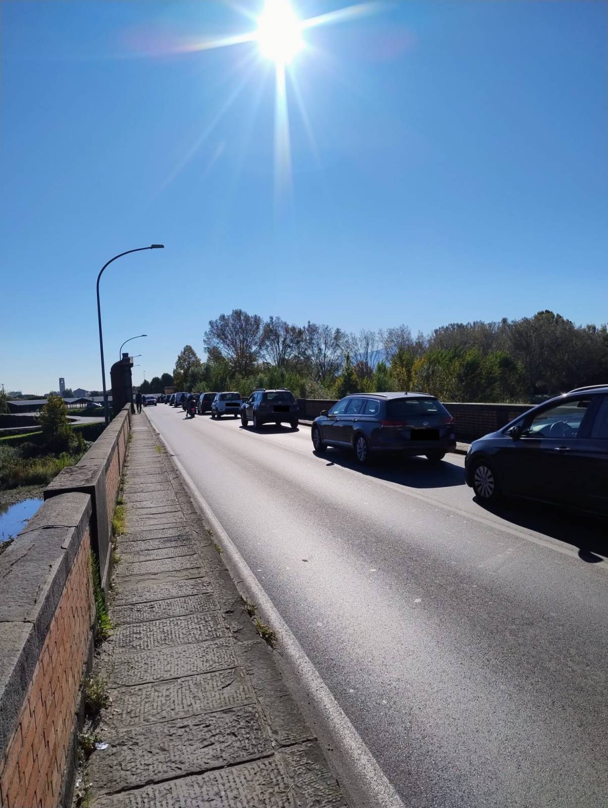 La variante dell’ottovolante, come è stata ribattezzata da un cartello ironico posto da ignoti cittadini, continua a far perdere tempo a chi proviene dalla zona nord di Lucca. Anche oggi, nella tarda mattinata di sabato 18 ottobre, a settimane dall’intervento annunciato come storico dall’amministrazione di Mario Pardini, si possono ancora osservare lunghe code per chi proviene da nord, attraversa il Ponte di Monte San Quirico per immettersi nella rotatoria che, in teoria, doveva migliorare l’intersezione con il flusso di mezzi proveniente da via Salicchi e da via Galileo Galilei.