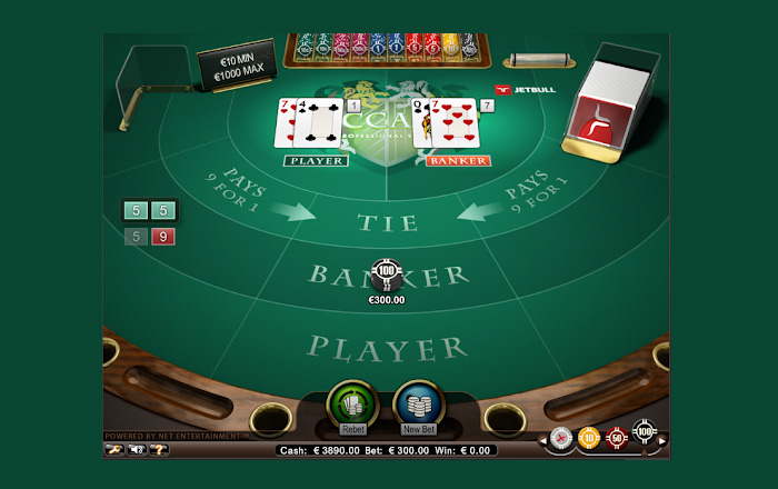 Si può puntare su uno dei tre risultati: giocatore, banco o pareggio.