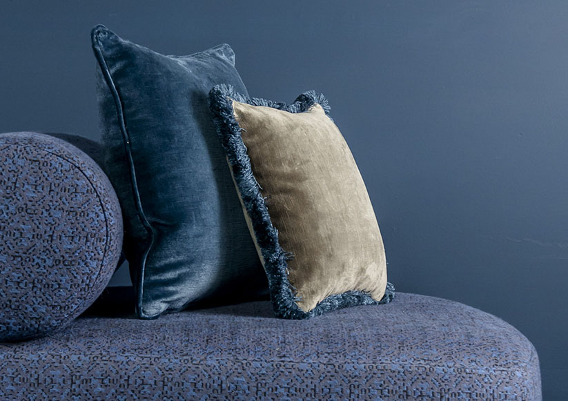 Per quanto riguarda il salotto, i cuscini vengono di norma posizionati sul divano e sulle poltrone; per il numero il suggerimento classico è il seguente: cuscini in numero dispari superiore di uno o di due rispetto al numero di posti disponibili sul divano (divano a tre posti: cinque cuscini). Anche in questo caso Ferò propone una grande varietà di tessuti: doppia garza, velluto, seta, misto seta ecc.