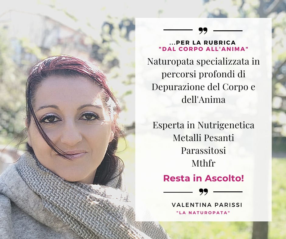 Ciao caro lettore e cara lettrice, sono veramente emozionata nell’iniziare questa nuova avventura insieme alle Gazzette e a tutti voi… Mi chiamo Valentina Parissi e la Naturopatia mi ha salvato la vita ben oltre 20 anni fa! Avevo solo 23 anni quando mi sono messa a ricercare una soluzione alla miriadi di sintomi e problematiche che avevano reso la mia Vita Off Line!!! La medicina stava contribuendo al mio degrado, non tolleravo i farmaci e l’unica soluzione per loro era sottopormi all’intervento per togliere 3 ernie nella zona lombare.