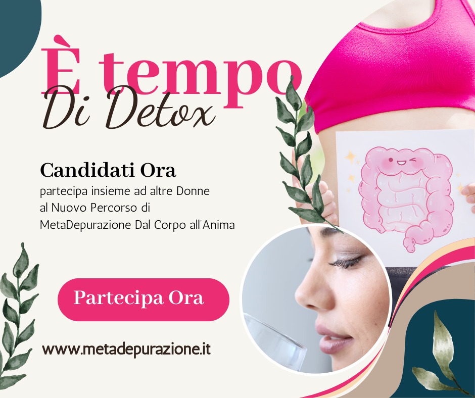 Ma non è finita qui, oggi puoi candidarti al percorso di MetaDepurazione compilando il questionario a questo link: https://forms.gle/Xf23d4cUytaScCgL9 e prendi subito il tuo appuntamento. Tra poco partirà la “maratona detox di gruppo”