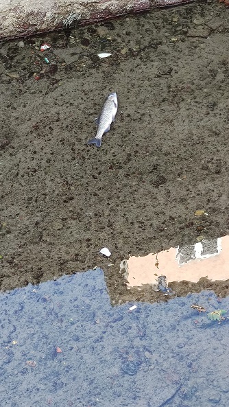 Torniamo però al 29 aprile. All’altezza dell’Istituto Santa Dorotea ho notato subito che il Fosso era quasi asciutto e, per l’attenzione che ho sempre per il mondo Animale, ho pensato subito ai pesci che lo vivono. Ho continuato a camminare non togliendo mai i miei occhi da quello che non si poteva più definire un corso d’acqua sano. Le grandi pietre che in alcuni punti fanno da letto, erano addirittura scoperte e asciutte dal sole e dall’aria. In pozze dove ormai l’acqua era bassissima e sicuramente molto riscaldata, i pesci, in numero maggiore i più grandi, cercavano di sopravvivere; uno, di notevole dimensione, era già morto e si trovava sopra un rialzamento di terra reso scoperto dalla mancanza d’acqua. La situazione non cambiava per tutto il corso e mentre stavo per raggiungere la parte della vasca sotto l’ex mulino, speravo che lì, almeno, ci fosse acqua a sufficienza. Non era così, anzi i pesci si erano rifugiati, numerosi, in quella poca rimasta e per i più grossi era difficile muoversi, visto che la loro pinna dorsale spuntava fuori dalla superficie.