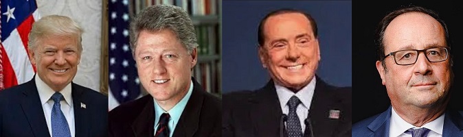 Donald Trump, Presidente degli USA, rischia l’impeachment per la sua presenza in un club di escort di minorenni; un suo predecessore, Bill Clinton, fu costretto a dimettersi dall’incarico per “eccesso di confidenze” con una sua stagista; di qua dell’oceano, le olgettine di Silvio Berlusconi fecero il giro del mondo, compromettendone non poco l’immagine sua e del Paese mentre, François Hollande, allora Presidente francese, rovinò la sua carriera politica per avventure extra coniugali!