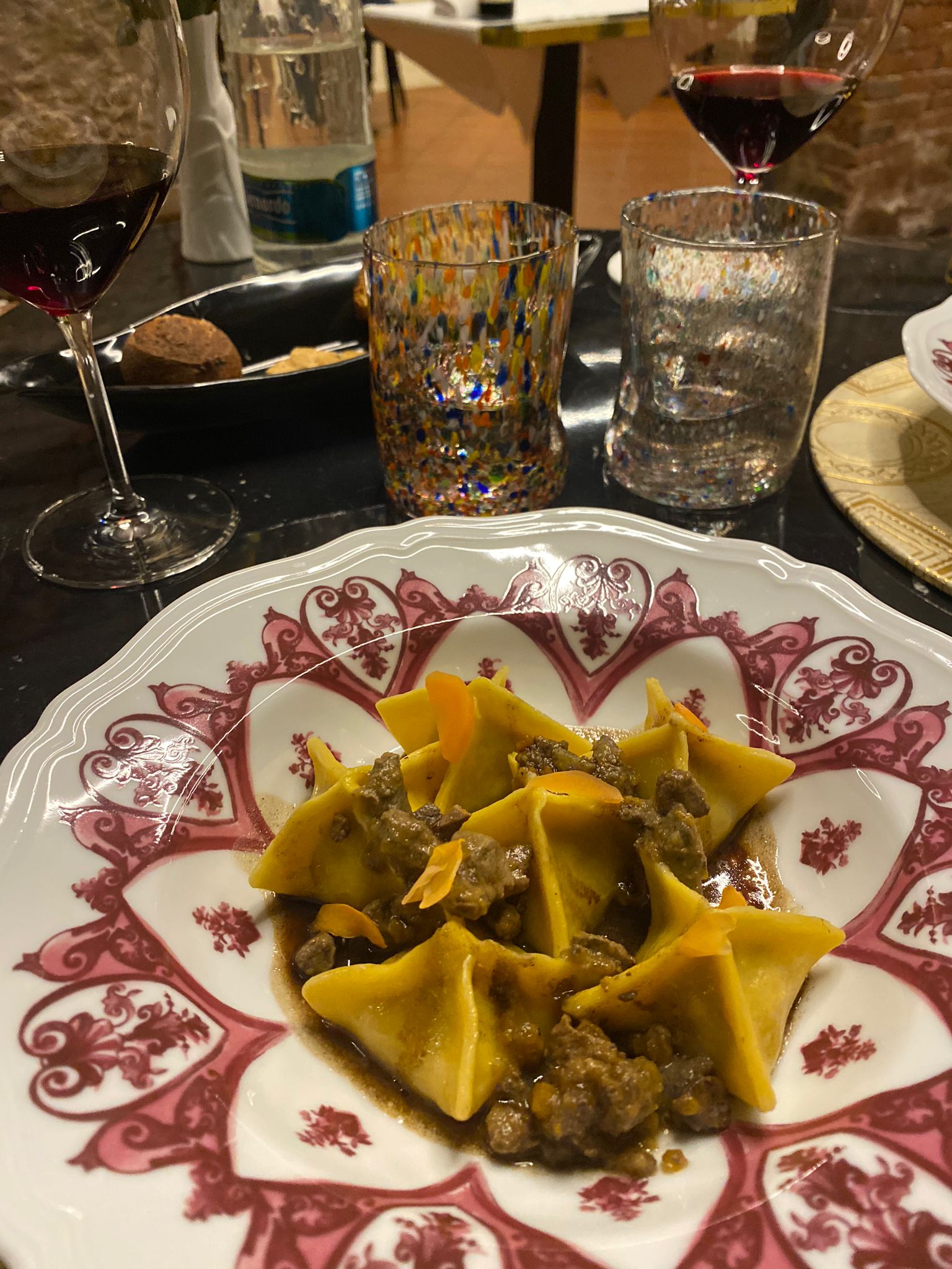 Nel percorso di carne, non si può non citare il raviolo di coniglio, subito il piatto in cui viene servito ci porta indietro nel tempo e ancora di più il sapore che si avvicina a quello che si può trovare sulla tavola della nonna, l’inconfondibile ragù di coniglio che si scioglie in bocca.