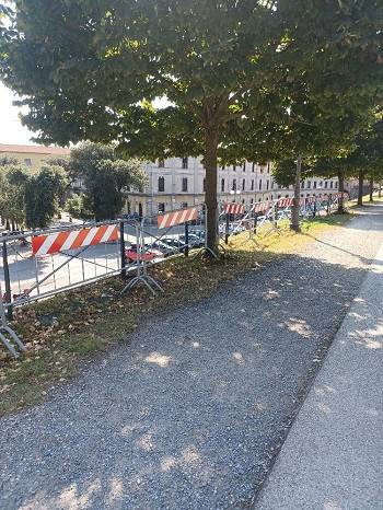 Forse hanno sbagliato lato: di fronte in effetti, dopo anni, stanno sistemando una recinzione che poteva cadere sui passanti.