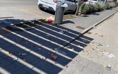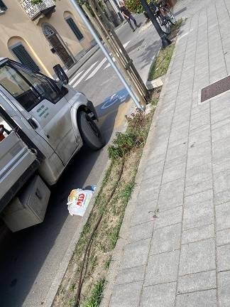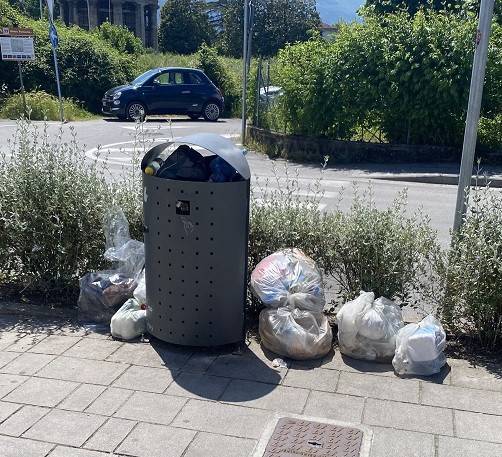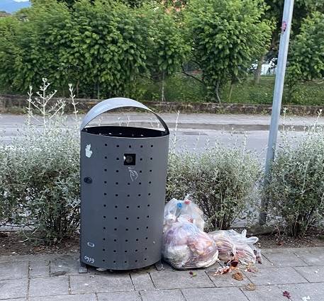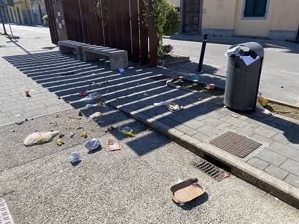 - Partendo dai cestini di Via Nottolini (fontana e uscita sottopasso), appena usciti dalla stazione, cassonetti giornalmente strabordanti di rifiuti indifferenziati lasciati da umani, pasto di uccelli, magari presto anche di topi.