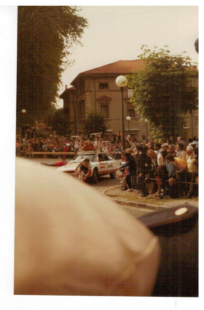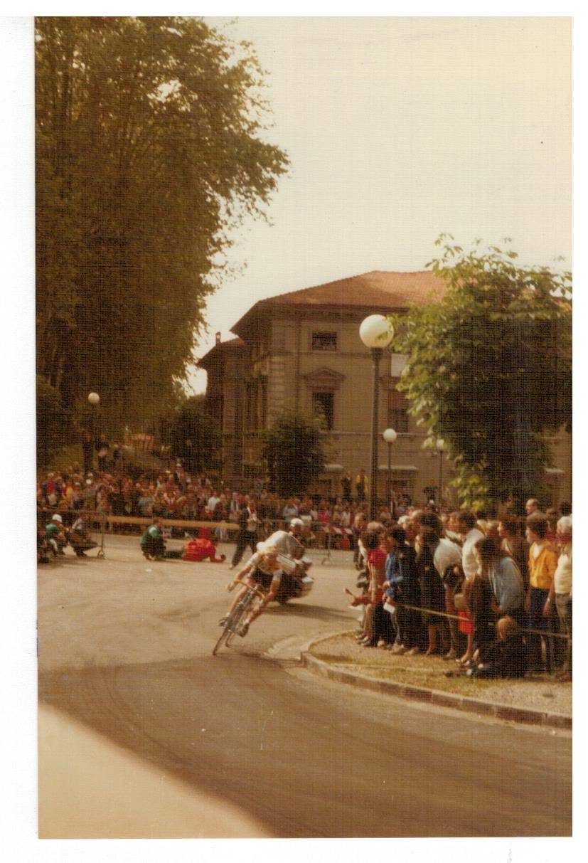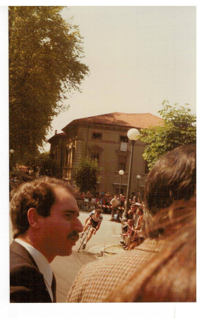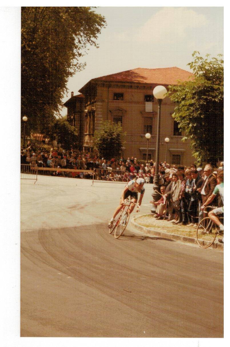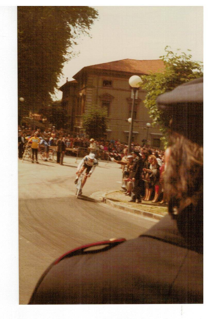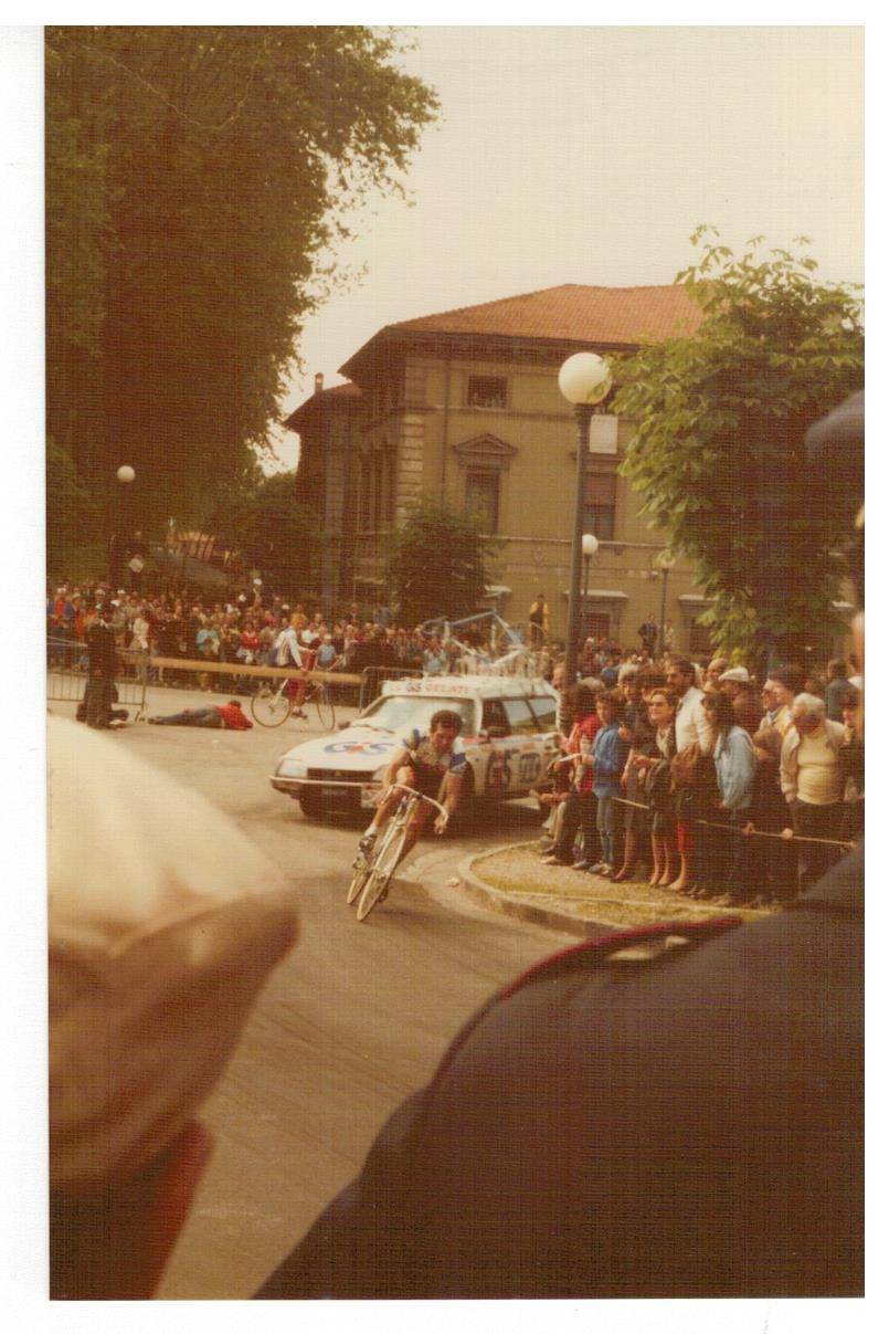 le invio le foto del Giro d'Italia che scattai tanti anni fa, non credo che sia il giro del 1985 (a quei giorni ero completamente assorbito dalle auto da corsa) ma di qualche anno prima perché le dovrei aver scattate con la mia prima macchina fotografica Voigtländer Vito C acquistata in via Nuova a Lucca, ma non ricordo il nome del fotografo (la vecchiaia fa brutti scherzi, me lo può ricordare?). Sulla custodia c'è ancora la firma di Gino Bartali che incontrai all'arrivo del Giro a Viareggio. Spero che chi ha più memoria di me e conosce il ciclismo riesca a riconoscere i vari corridori. Sarebbe interessante se qualche lettore si riconoscesse o riconoscesse genitori o parenti.