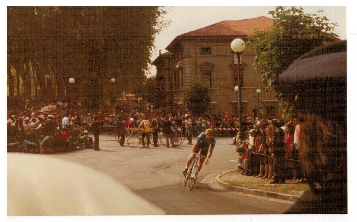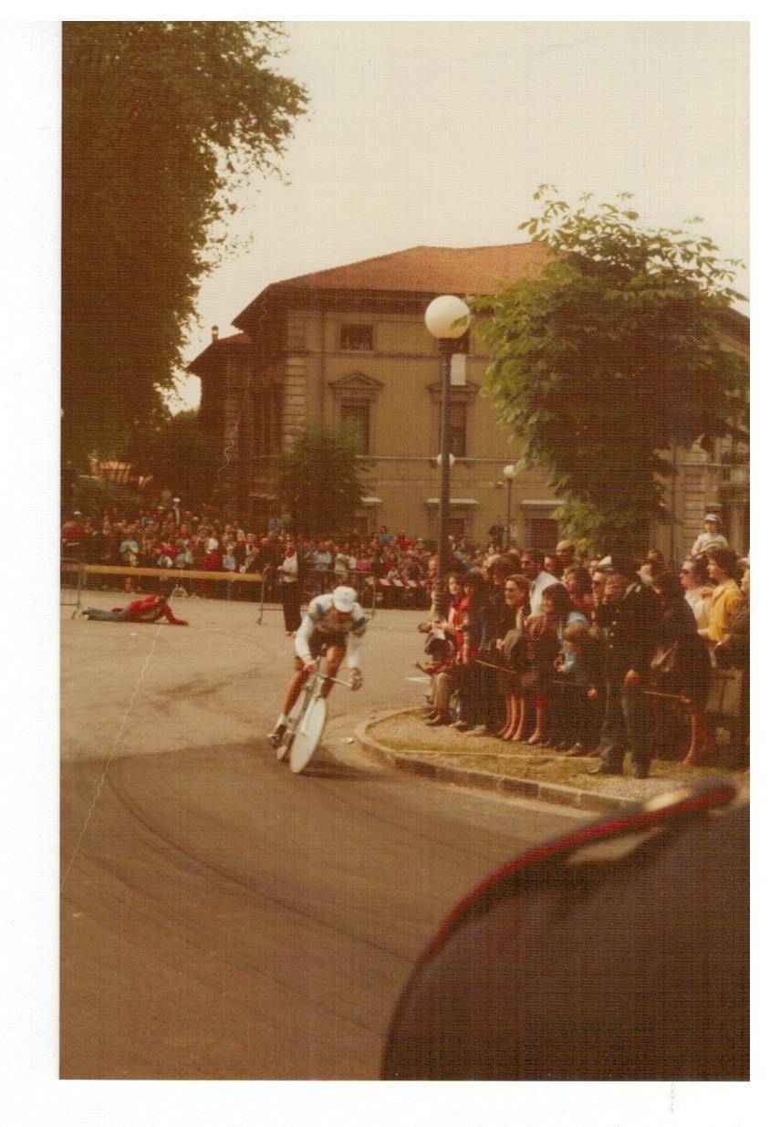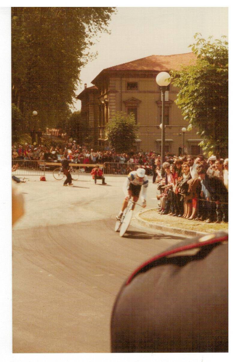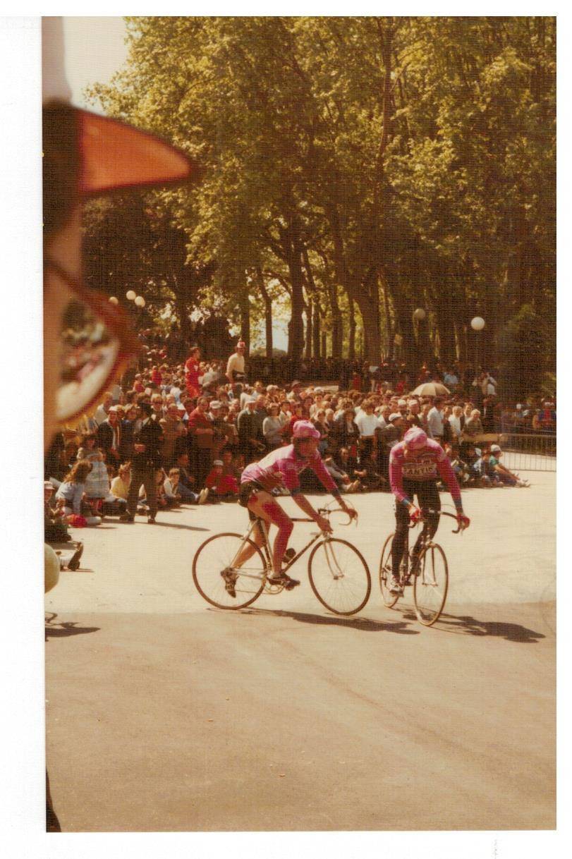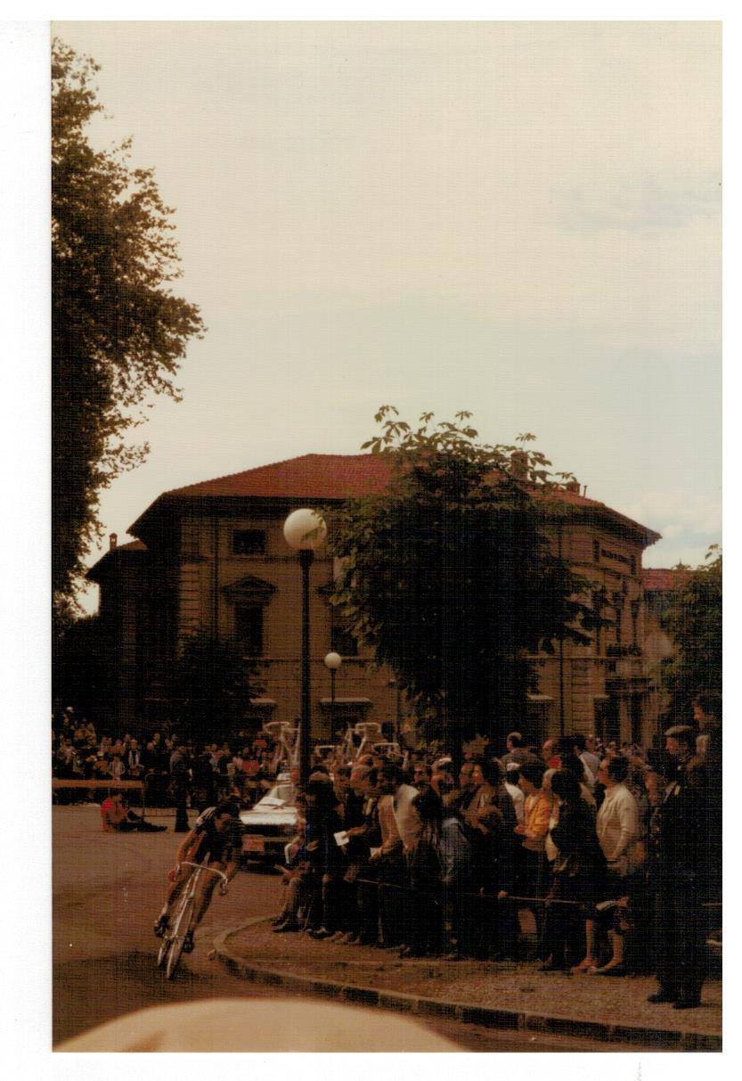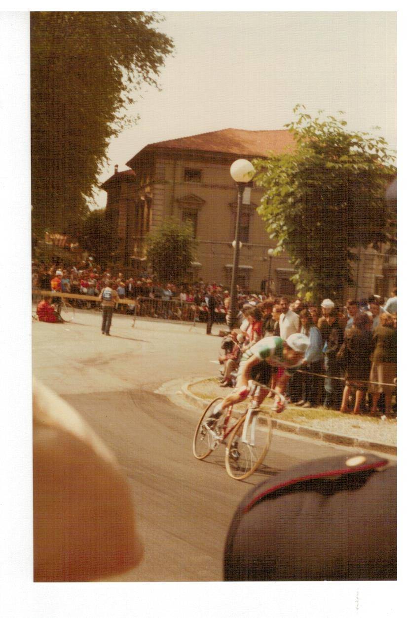 le invio le foto del Giro d'Italia che scattai tanti anni fa, non credo che sia il giro del 1985 (a quei giorni ero completamente assorbito dalle auto da corsa) ma di qualche anno prima perché le dovrei aver scattate con la mia prima macchina fotografica Voigtländer Vito C acquistata in via Nuova a Lucca, ma non ricordo il nome del fotografo (la vecchiaia fa brutti scherzi, me lo può ricordare?). Sulla custodia c'è ancora la firma di Gino Bartali che incontrai all'arrivo del Giro a Viareggio. Spero che chi ha più memoria di me e conosce il ciclismo riesca a riconoscere i vari corridori. Sarebbe interessante se qualche lettore si riconoscesse o riconoscesse genitori o parenti.