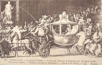 La carrozza dell’Imperatore, pratica, ricercata e sontuosa, con le porte contrassegnate dallo stemma imperiale, quando attraversava le città veniva preceduta da un primo gruppo di vetture di servizio, seguito da altre che trasportavano topografi, ufficiali e segretari. Ad ogni tappa prevista dal piano di marcia, i funzionari — ben prima dell’arrivo di Napoleone — installavano un gabinetto di lavoro provvisorio, per permettergli di mettersi subito all’opera senza perdere tempo prezioso.