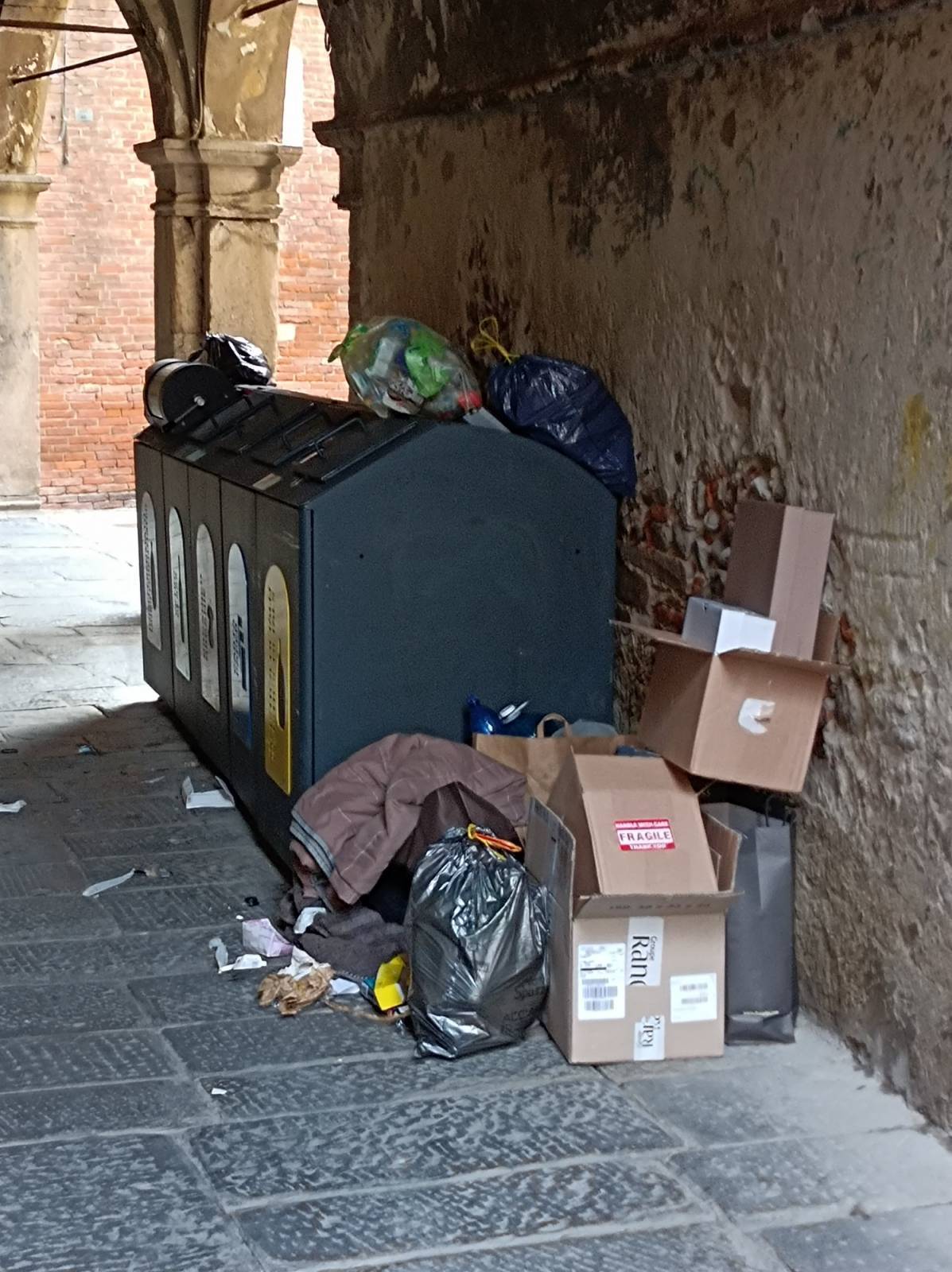 Da mesi e mesi faccio presente tramite fotografie che invio a whatsapp di Sistema ambiente la situazione indecente dei rifiuti nel centro storico.