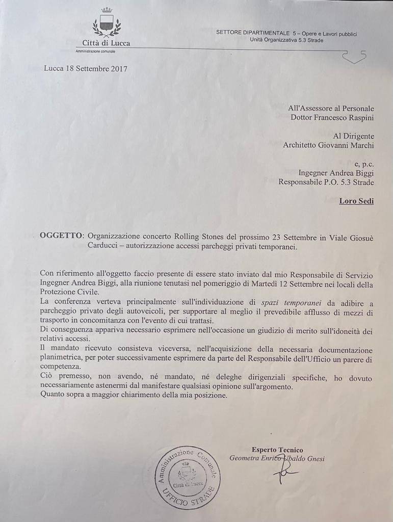 Capisco poco le tue lamentele di oggi, riguardanti la condotta della nuova Amministrazione, poiché a riguardo delle censure mosse circa le criticità del complesso immobiliare di proprietà di Sistema Ambiente in quel dell’Acquacalda, pur essendo l’Assessore di rifermento, in un recente passato, mai fornisti i chiarimenti domandati per scritto. Credo sia questo il tempo per rammentarti il saccente atteggiamento che avesti nei miei confronti nel Settembre 2017, in occasione del concerto dei Rolling Stones. In una riunione si trattò di autorizzare dei parcheggi, che parcheggi non erano, il dirigente delegato al rilascio di quei permessi, valutata la tematica se ne andò nel breve, io che ero stato inviato lì senza deleghe, in quelle condizioni, non me la sentì di esprimere un giudizio di merito. Nei giorni successivi, mi incontrasti in Via della Colombaia fianco Palazzo Parensi, nell’occasione con il peso del tuo ruolo, non mancasti di mortificarmi in mezzo alla strada.