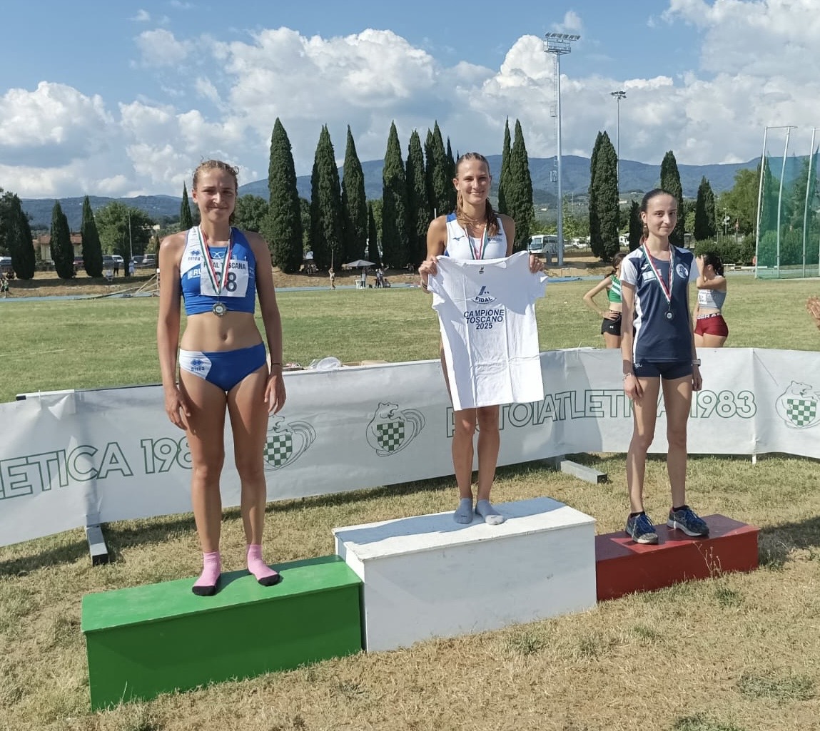 Sul primo gradino del podio, con il titolo toscano Juniores ci sono: Aurora Massaglia nel salto in lungo (5.70), Sauro Fanucchi nel martello (52.44) e Leonardo Pierotti nei 400 metri con il tempo di 51”24 davanti di un soffio a Simone Melani (51”25) che si aggiudica il secondo gradino. Le altre medaglie d’argento sono: nel salto in alto per Joseph Manfredi che, al secondo anno di categoria, con la misura di 1.96 riscrive il proprio primato personale e nel salto in lungo per Marco Pardini (6.59) mentre a mettersi al collo il bronzo ci pensano: Veronica Landucci nel salto in lungo (5.05); Matilde Nannini nei 1500 metri (6’02”52) e Carlo Bresciani nel salto triplo (13.55). Bella prova anche per Vutha Locci e Mateo Luti, rispettivamente quarto e sesto sui 400 metri; Simone Melani e Cristian Cordoni, quinto e sesto sui 200 metri; Augusto Orsi sesto nei 400 ostacoli e Matilde Nannini quarta negli 800 metri.