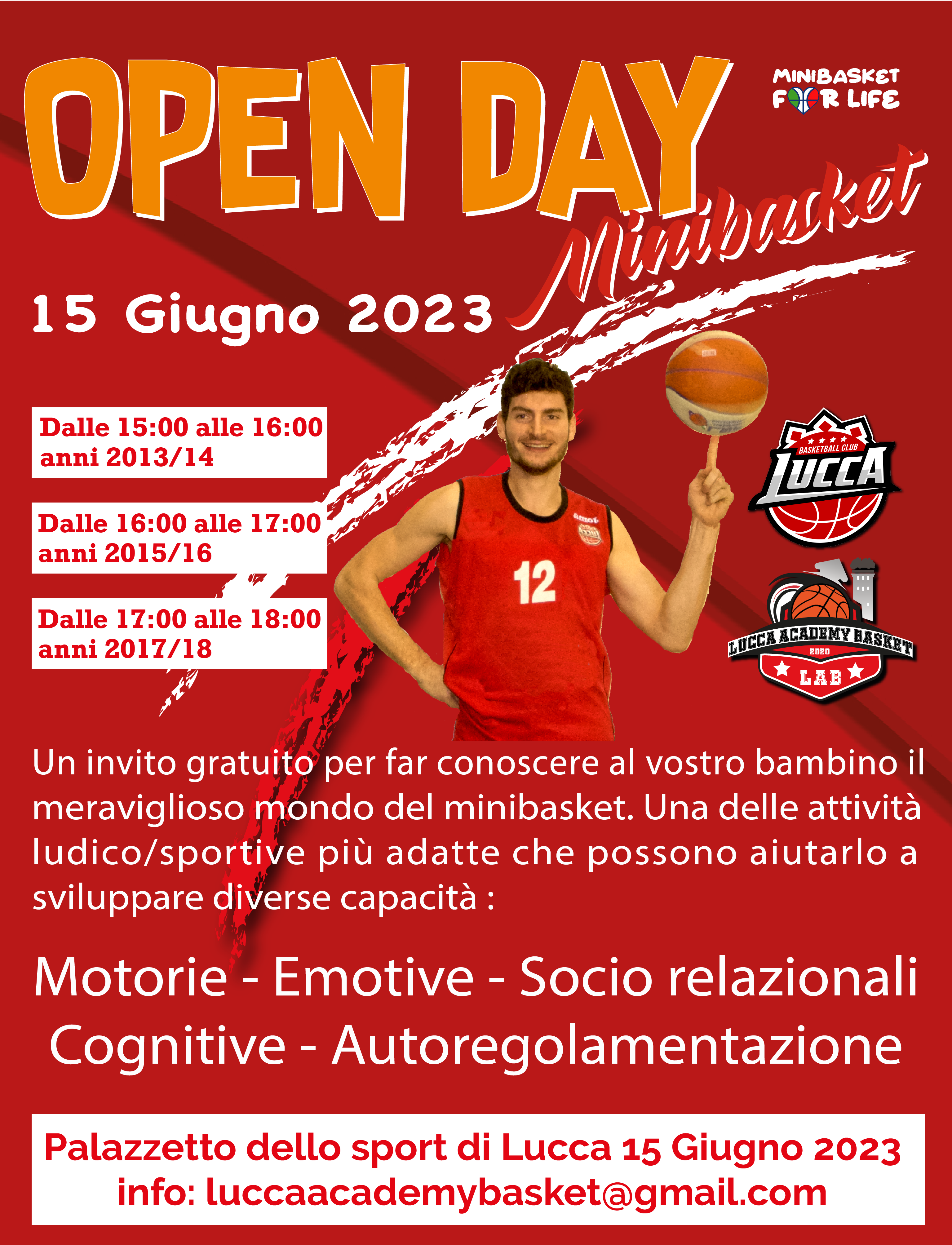 Appuntamento fissato per giovedì 15 giugno, per tutti i bambini dai 5 ai 10 anni al Palazzetto dello sport di Lucca.