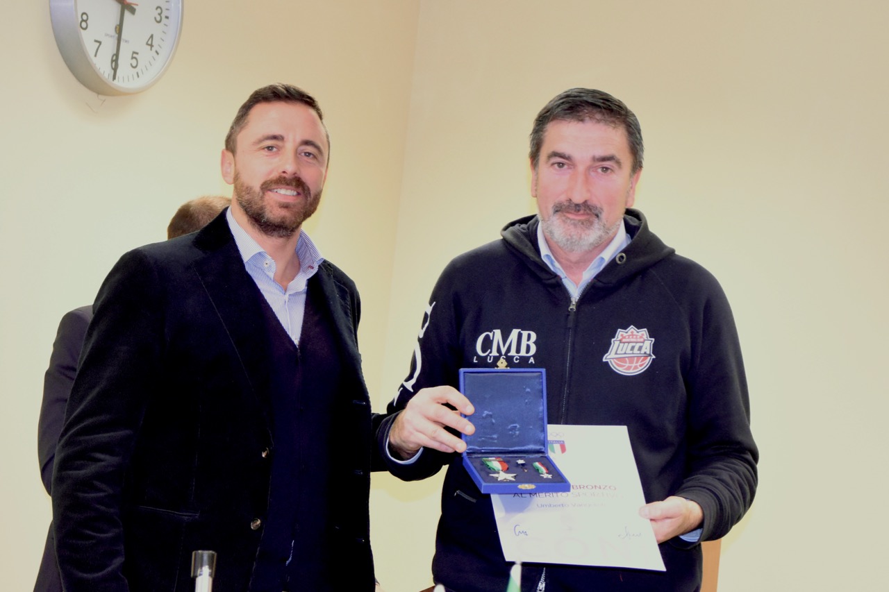A consegnargli la stella di bronzo è stato l'assessore allo sport in rappresentanza del Comune di Lucca, Fabio Barsanti. Ha poi ricevuto i complimenti anche da Simone Cardullo, amico e compagno di tanto lavoro, svolto insieme nella Federazione Italiana Pallacanestro ed oggi in veste di Presidente regionale del Coni.