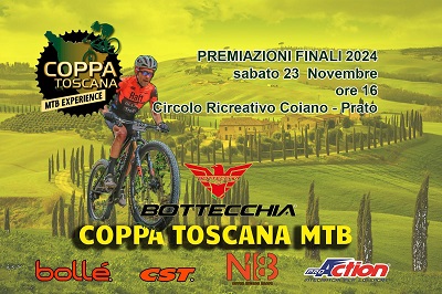 Sabato 23 novembre, presso il Circolo Ricreativo Coiano a Prato, ormai sede abituale per l’atto conclusivo, si svolgeranno le premiazioni dell’edizione 2024 della Coppa Toscana Mtb. Il circuito più anziano d’Italia nel mondo delle ruote grasse festeggerà in quell’occasione i vincitori di quest’edizione, trascorse attraverso 7 grandi classiche del calendario non solo toscano, considerando l’altissima affluenza che queste classiche hanno avuto per tutto lo sviluppo del circuito.