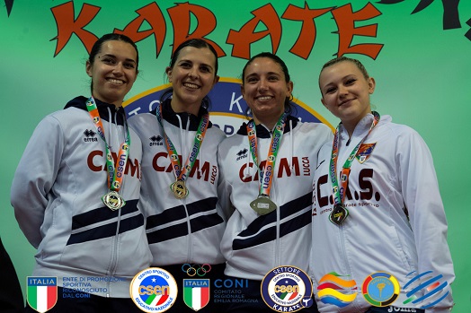 La gara si è aperta con le ragazze della categoria Senior di kata che, su 24 partecipanti, durante i due turni di eliminatorie si sono sempre mantenute nelle posizioni più alte e, grazie ai notevoli punteggi totalizzati anche nel turno di semifinale, le atlete hanno disputato le fasi finali scontrandosi l'una contro l'altra ed hanno fatto en plein: Oro per Fanti Agnese, argento per Bozzi Rebecca, Bronzo per Morbini Gaia e 5° posto per Bonino Melissa.