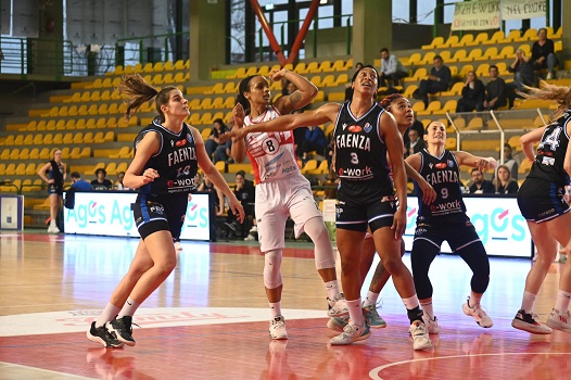 Le cose sembrano mettersi anche meglio per Lucca quando Kunaiyi, di gran lunga la migliore giocatrice delle emiliane, esce per raggiunto limite di falli. Da questa defezione, invece, Faenza raccoglie una maggiore intensità e rabbia che trasmette sul parquet. Aver raggiunto il bonus di falli a proprio favore con 7’52’’ sul cronometro, di certo agevola il piano rimonta delle romagnole, ma Lucca smarrisce la via del canestro. La tripla di Policari vale l’aggancio a quota 63, con il sorpasso perfezionato dall’1/2 ai liberi di Rosa Cupido. Con Miccoli out a sua volta a causa del quinto fallo, Gesam Gas e Luce prova ad aggrapparsi alla forza della disperazione, ma ancora una scatenata Cupido colpisce da tre. Il ferro sputa il tentativo dall’arco, che sarebbe valso un nuovo controsorpasso, griffato Gilli. Dalla lunetta Jori Davis chiude i conti sul 68-72.