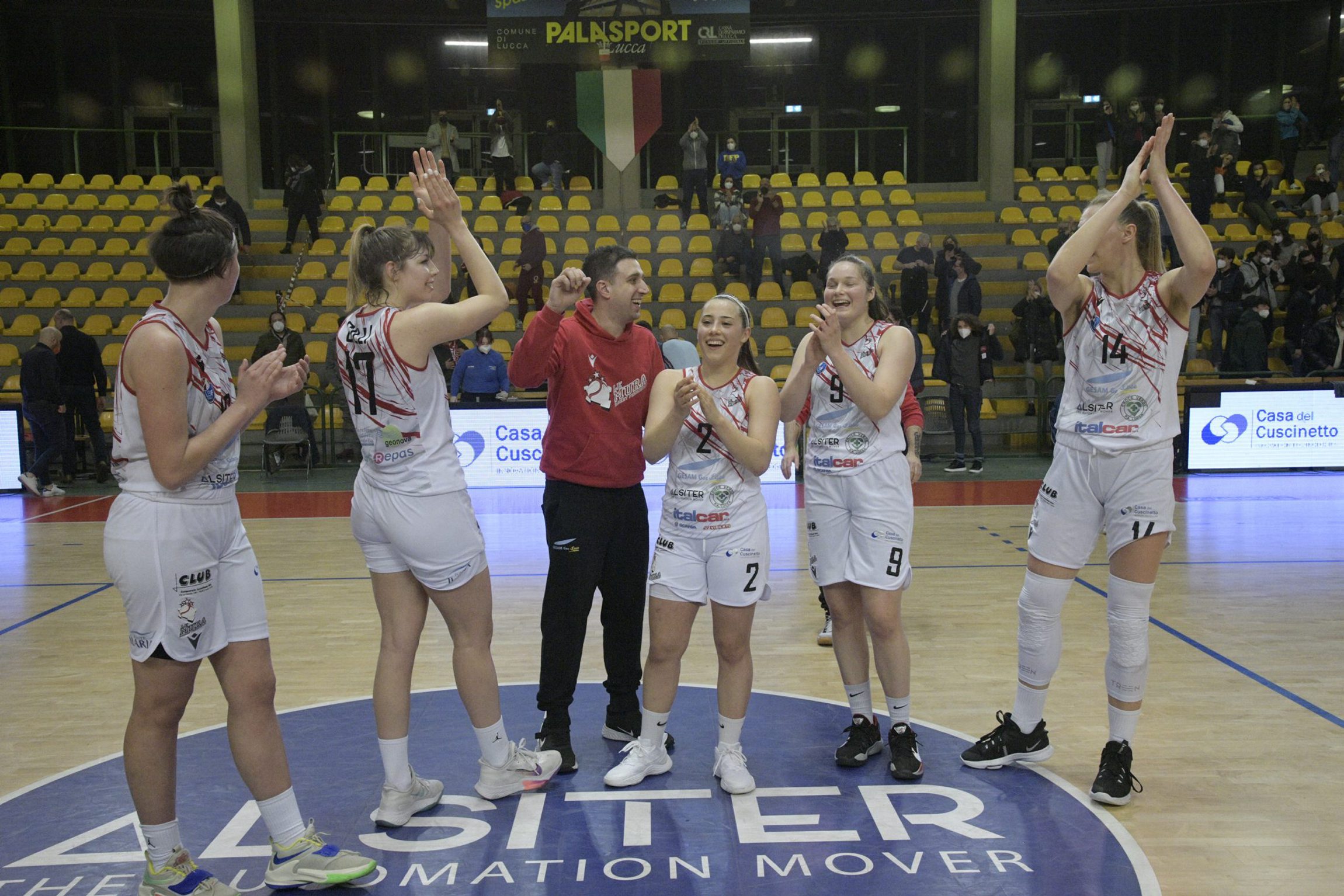 Kaczmarczyk, Valentino, Gilli, Natali e Azzi sono le cinque stoiche biancorosse sul parquet. Coach Dikaioulakos, per non correre rischi, opta per il seguente quintetto: Gruda, Gaye, Keys, Laksa e Verona. La partita, come ampiamente prevedibile, diventa un brutto spot che chi di dovere avrebbe dovuto evitare. Il primo canestro della contesa è un piazzato della classe 2005 Sara Valentino. Le venete prendono il comando del punteggio, trovando la via della retina da ogni posizione. Ogni punto delle locali, mai come in questa circostanza sudato, è tributato dai sinceri applausi del pubblico di fede lucchese, accorso in buon numero nonostante il destino segnato del match. Primo quarto che si conclude sul 10-30.