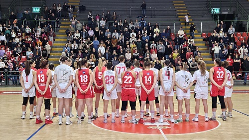 Bel pomeriggio di sport, riflessione e coinvolgimento dei più piccoli in occasione della decima di andata del campionato di serie B femminile. Si inizia con la presentazione delle madrine dell'evento per le scuole, le campionesse Nadia Centoni e Imma Gentile, alla presenza del responsabile sport del Provveditorato agli Studi prof. Oliva. Subito dopo, all'interno dei 107 secondi di silenzio previsti dalla FIP regionale in occasione della Giornata internazionale contro la violenza sulle donne, la lettura di una toccante prosa di W. Shakespeare con tutte le atlete disposte sul centrocampo.