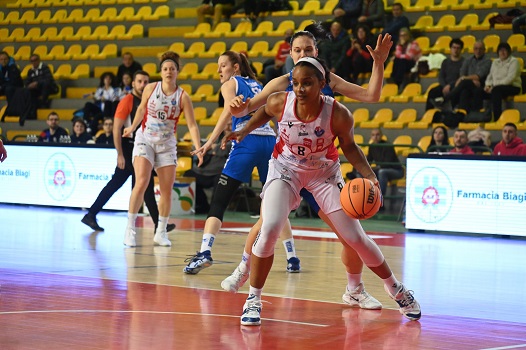 Anche nei successivi dieci minuti Brixia, con Sara Crudo che deve ancora ritrovare il ritmo partita, affida le sue speranze offensive alle lunghe Vente e Molnar, con il pivot croato limitato dal numero di falli, già tre, raggiunto neanche a metà partita. L’aggressività di Lucca si combina con una rapida circolazione della palla, prerogativa pesante per aprire spazio alle tiratrici locali. I piazzati di Morrison e Tulonen fanno schizzare sul +9 il vantaggio del Basket Le Mura: a metterci una toppa ci prova Johnson, con la tripla del 23-17 . Con la stessa arma si iscrive a referto, dalla parte opposta, anche Sara Bocchetti. Sul 31-17 Lucca appare in controllo della situazione ma la seconda tripla di Johnson induce Andreoli, onde evitare il replay di quei blackout mentali andati in scena troppe volte, a chiamare un time-out con 1’42’’ ancora sul cronometro. Messaggio recepito dalle biancorosse che vanno all’intervallo lungo sul 33-20. Eloquente la differenza realizzativa tra Lucca e Brescia: le biancorosse tirano con il 37%, le lombarde con il 19%.