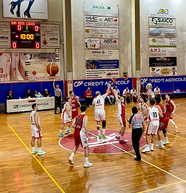 I 54 tiri liberi tirati da Lucca nel corso dei 40' la dicono lunga sull'andamento della gara iniziata sul filo dell'equilibrio con Lucca partita subito a razzo grazie ai canestri di Gallo, Succurto e Balducci, anche super rimbalzista. Tutti in doppia cifra insieme al solito Cattani che ne mette a referto 31 (di cui 21 dalla lunetta) confermandosi il miglior realizzatore dei biancorossi.
