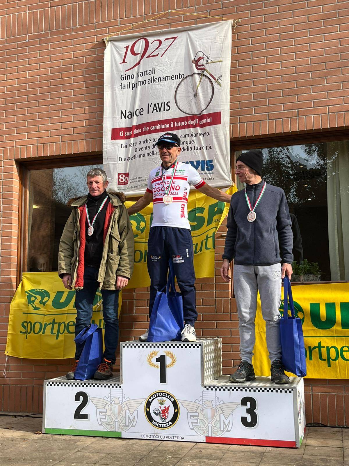 Verso la fine di novembre a Volterra nel corso della 6.a prova del 7.o Trofeo Florence Supercross tre atleti del team capannorese hanno conquistato il titolo di campione regionale Uisp CX nelle rispettive categorie. Per l' occasione ha tagliato il traguardo vincitore assoluto Matteo Cancherini (M1), già campione italiano in carica e che difenderà il titolo per il 2025-26. Nella M5 si è imposto il plurivittorioso Daniele Giusti, mentre l' "eterno" Luca Buonaguidi ha avuto la meglio di un lotto di avversari molto agguerrito nella M7, superando nell' ordine Fabiano Bello e Fulvio Ghini. La gestione della bici sul fango e sulle salite ripide fa di Matteo Cancherini uno specialista formidabile tanto che ad una gara dal termine conduce nella M1 anche la classifica del Trofeo Florence con moltissime possibilità di aggiudicarselo in una stagione dove ancora una volta ha fatto prevalere la sua resistenza anaerobica e la sua potenza esplosiva. Anche Daniele Giusti è nelle prime posizioni ma a causa del lavoro ha saltato qualche gara precludendosi la possibilità di aggiudicarsi pure lui il trofeo. Tanti i nomi degli atleti di Claudio Andolfi vittoriosi e fra coloro che hanno segnato il proprio nome negli ordini di arrivo ci sono frequentemente Elisa Federigi e Chiara Turchi che vanta un palmares fra i più prestigiosi nelle Gran Fondo di sempre in Toscana.
