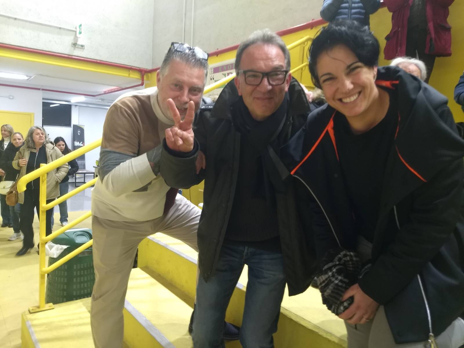 Entra a questo punto di scena il favoloso pubblico bianconero che gremisce i posti a disposizione del Palapiaggia. Una esaltazione collettiva che coinvolge il pubblico che esplode con un' ovazione in un' atmosfera di festa per celebrare un successo insperato alla vigilia contro la prima della classe. Una gioia che coinvolge anche il presidente bianconero Enrico Bertini, il vice presidente Erminio Artoni, il direttore generale Oronzo Miccoli e il D.S. Paolo Vichi. Fra gli spettatori si è rivisto anche il presidente dei tanti successi in B1 Paolo Gradi e le ex atlete bianconere Ilaria Gradi e Cristina Dovichi.