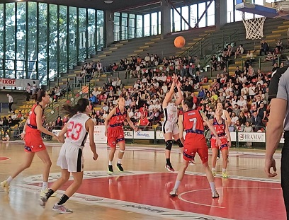 Ultimo quarto, Milano dà l'impressione di controllare la gara, inizia la solita Savini per il 34-45, che replica anche alla tripla di Dianda (37-48). Bestagno 2 volte per il 37-52, poi un libero di Dell'Orto (37-53). Un giro in lunetta anche per Michelotti (38-53). Polato da due per il massimo vantaggio (38-55), Maffei su assist di Paulsson poi due liberi a testa di Tessaro e Bestagno chiudono sul 42-57.