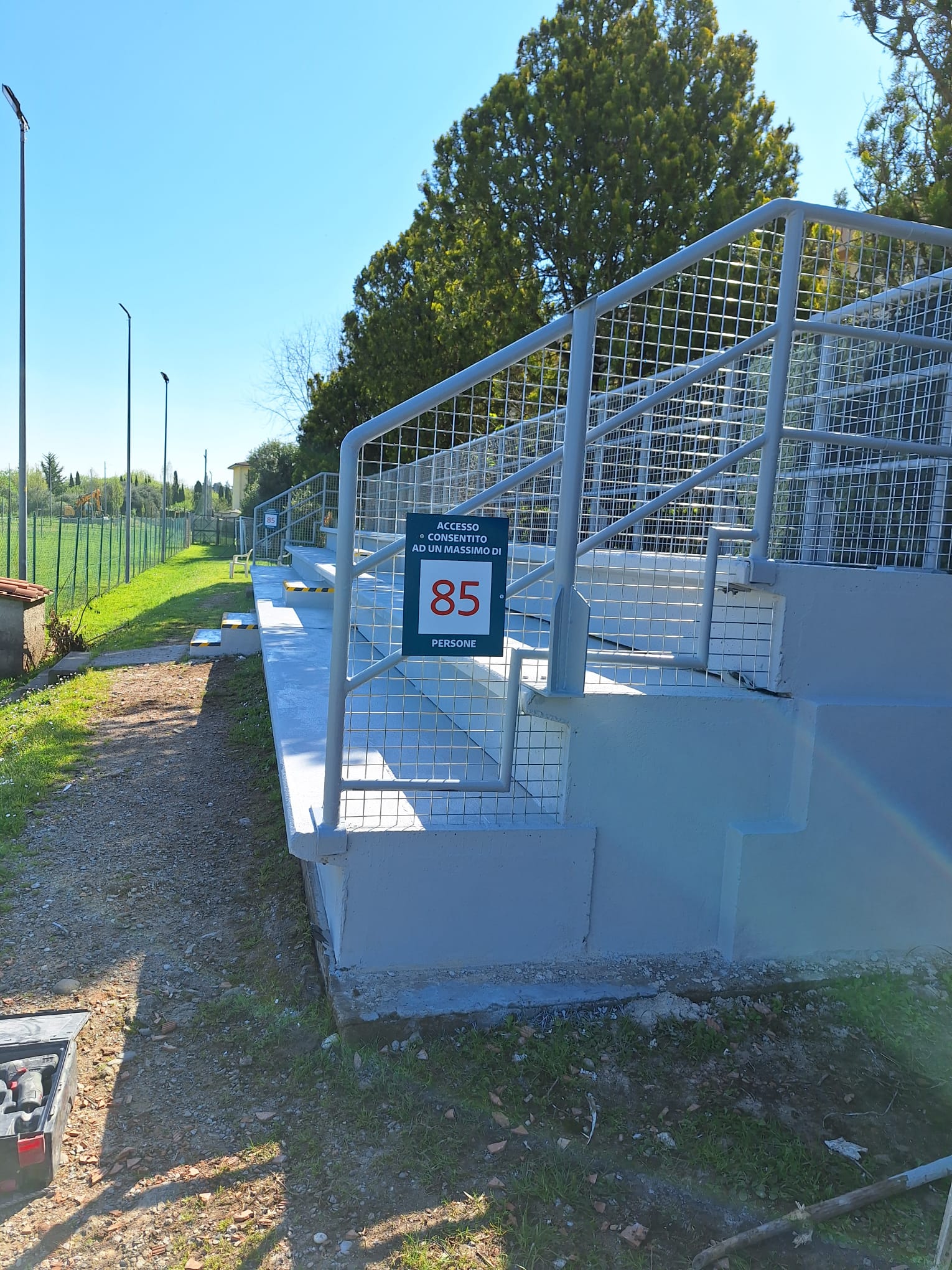 Il percorso di censimento, verifica, programmazione e riqualificazione è iniziato grazie alla delibera 176/2024, ossia l'atto d'indirizzo per una ricognizione sullo stato e sulla gestione degli impianti sportivi comunali, a seguito della quale gli uffici competenti hanno mappato il territorio, stilato un elenco di priorità e garantito la programmazione e copertura finanziaria degli interventi. Oltre ai lavori strutturali per ottenere l'agibilità delle tribune (con nuove reti ed elementi metallici elettrosaldati), sono state messe a nuovo tutte le superfici in cemento armato degradate, rinnovati gli intonaci, nuova verniciatura degli elementi metallici, imbiancatura intonaci, rimozione rifiuti e pulitura aree verdi degradate, apposizione di cartellonistica sulle capienze massime delle strutture.