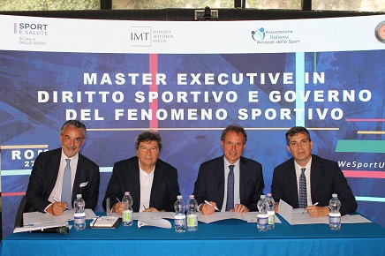 Si è firmato oggi nella location Wesportup un’importante convenzione per dare il via al primo master multidisciplinare ed interdisciplinare in Diritto Sportivo e Governo del Fenomeno Sportivo. L’accordo per 3 anni è tra Sport e Salute, per tramite della Scuola dello Sport, La Scuola IMT Alti Studi Lucca, l’Associazione Italiana Avvocati dello Sport e l’Ordine degli Avvocati di Lucca. Il corso è rivolto a dirigenti e professionisti sportivi, ad avvocati che vogliono approfondire le competenze in questo ambito e a tutti i laureati.