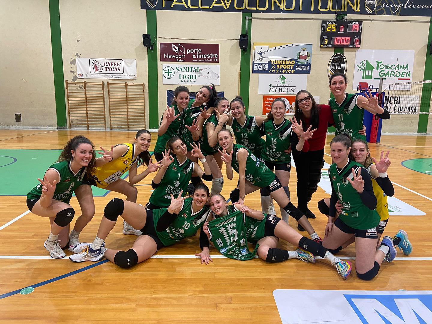 Toscanagarden Nottolini: Trevisiol opposta a Lunardi o Coselli; al centro Salamida e Bruni; Schiacciatrici: Sgherza e Fatone; libero Battellino.
