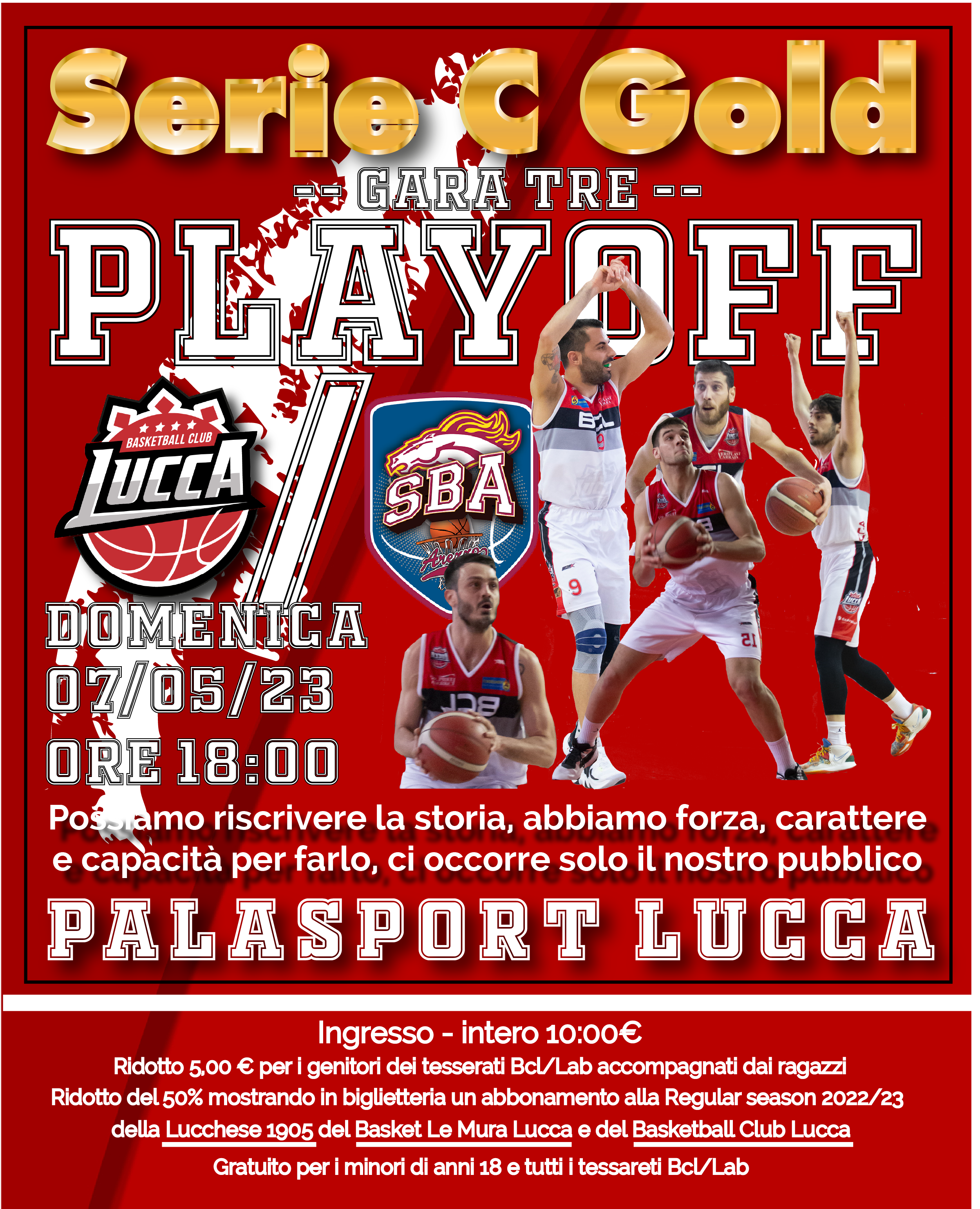 Il Basketball Club Lucca, in occasione della partite dei play-off che si disputeranno al Palasport di Lucca domenica 7 maggio alle ore 18 e mercoledì 10 alle ore 20:30, nell'ottica di un virtuale gemellaggio sportivo tra le società Lucchese Calcio 1905, il basket Le Mura Lucca e il Bcl, ha previsto, con l'intento di far vivere emozioni nuove a chi ama questo sport e a chi per i più svariati motivi non ha potuto avvicinarsi al basket maschile, di poter usufruire di una riduzione del 50 per cento sul costo del biglietto, che verrà applicata, a chiunque presenti alla biglietteria, la tessera relativa ad un abbonamento alla regular season 2022/23 di una delle società sportive indicate.