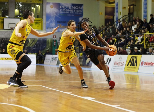 Al rientro dagli spogliatoi, infatti, Gesam Gas e Luce stringe le maglie della propria difesa. Ci vorranno ben 5’16’’ prima che le giallonere, nel frattempo scivolate sul 33-41 (Parmesani sugli scudi), riescano a sbloccarsi con Washington. Risalito fino al 42-43, San Martino di Lupari viene punito dal secondo gioco da tre punti di Kourtney Treffers. Da questo momento in poi, il pivot olandese sarà letteralmente incontrastabile. Una “bomba” di Giulia Natali spedisce Lucca sul 45-52.