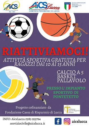 Per tutti questi motivi AICS Comitato Provinciale di Lucca APS propone il progetto Riattiviamoci !con lo scopo di sviluppare concretamente il principio del diritto allo sport per tutti, supportando gli/le adolescenti che, a seguito della crisi scatenata dal COVID 19, hanno abbandonato la pratica sportiva per motivi personali o economico-sociali. Il nostro obiettivo è quello di stimolare l’attività fisica e lo sport di squadra, focalizzandoci sui benefici ad esse correlati.