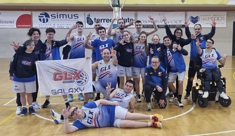 Pronto riscatto per i Galaxy nella quarta giornata del campionato toscano di baskin, i ragazzi di coach Volpini e Querci riescono nell’impresa di battere i campioni toscani in carica dei Pistoia baskin blu finora imbattuti. Dopo un primo quarto chiuso in leggero svantaggio 12-13, la squadra riorganizza le idee e con una difesa attenta e ad una buona organizzazione del gioco d’attacco va a riposo in vantaggio di 7 lunghezze. Nella ripresa il break si concretizza grazie alla precisione al tiro dei ruoli 3 e dei pivot Bertini - Incrocci ed un ottimo lavoro difensivo del ruolo 4 Clara Bartolini al suo debutto in campionato. Nell’ultimo quarto Pistoia si riavvicina pericolosamente fino al meno 4 ma la coppia Bertocchini-Grazzini riesce a respingere l’assalto e portare palloni decisivi nell’area dei pivot ed un canestro di Sarti chiude di fatto il match a favore dei bianco-blu sul punteggio finale di 67-61. Prossimo impegno dei Galaxy domenica 3 marzo ad Altopascio alle ore 11.30 contro il Cefa baskin Castelnuovo.