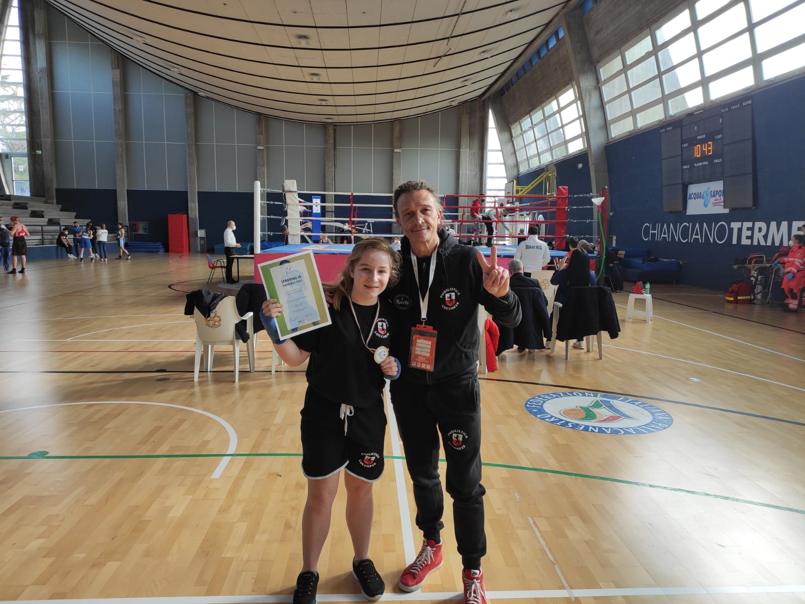 Per una giovane pugile che rientra trionfante alla base, c’è anche un giovane pugile carico di aspettative in partenza. Sasha Mencaroni è infatti partito nella mattinata di lunedì in direzione Assissi, in seguito alla convocazione nella nazionale Junior (15/16 anni). Là dovrà disputare un incontro al giorno da martedì a giovedì con gli altri 3 migliori pugili della sua categoria (46kg): Fortunato Antonino Marsala (Lazio), Angelo Argiolas (Sardegna) e Riccardo Gustov (Veneto).