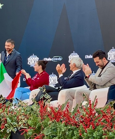 Sabato 13 dicembre, a Roma, quella storia ha trovato il suo naturale epilogo. Il Ministro Abodi ha accolto Bergamini per rendere omaggio a un’impresa che onora lo sport italiano nel suo significato più profondo e, oltre a questo, l’alpinista ha consegnato alla Presidente del Consiglio un gradito ricordo dell’impresa. In quell’occasione l’atleta lucchese ha compiuto un gesto di grande forza simbolica: ha restituito la bandiera al Governo, ripercorrendo le tappe della spedizione, le difficoltà affrontate e le esperienze maturate sulle più alte montagne del mondo. Un cerchio che si chiude: la bandiera affidata prima della partenza, portata dove nessuno era mai arrivato, e infine riconsegnata come testimonianza concreta di un risultato raggiunto.