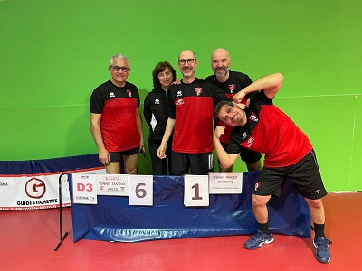 Infine, le inarrestabili formazioni della D3 (girone A) ancora una volta portano a casa due belle vittorie: il TT Lucca A di Dionisi, Quattriglia, Del Greco, Carmassi e Martinucci vince 6-1 contro il TT Oratorio Pontremoli e ‘insegue’ gli amici del TT Lucca B (Casale, Suppo, Stefani, Ercolini) che liquidano 7-0 il TT Acsi Pisa rimanendo così al comando della classifica.